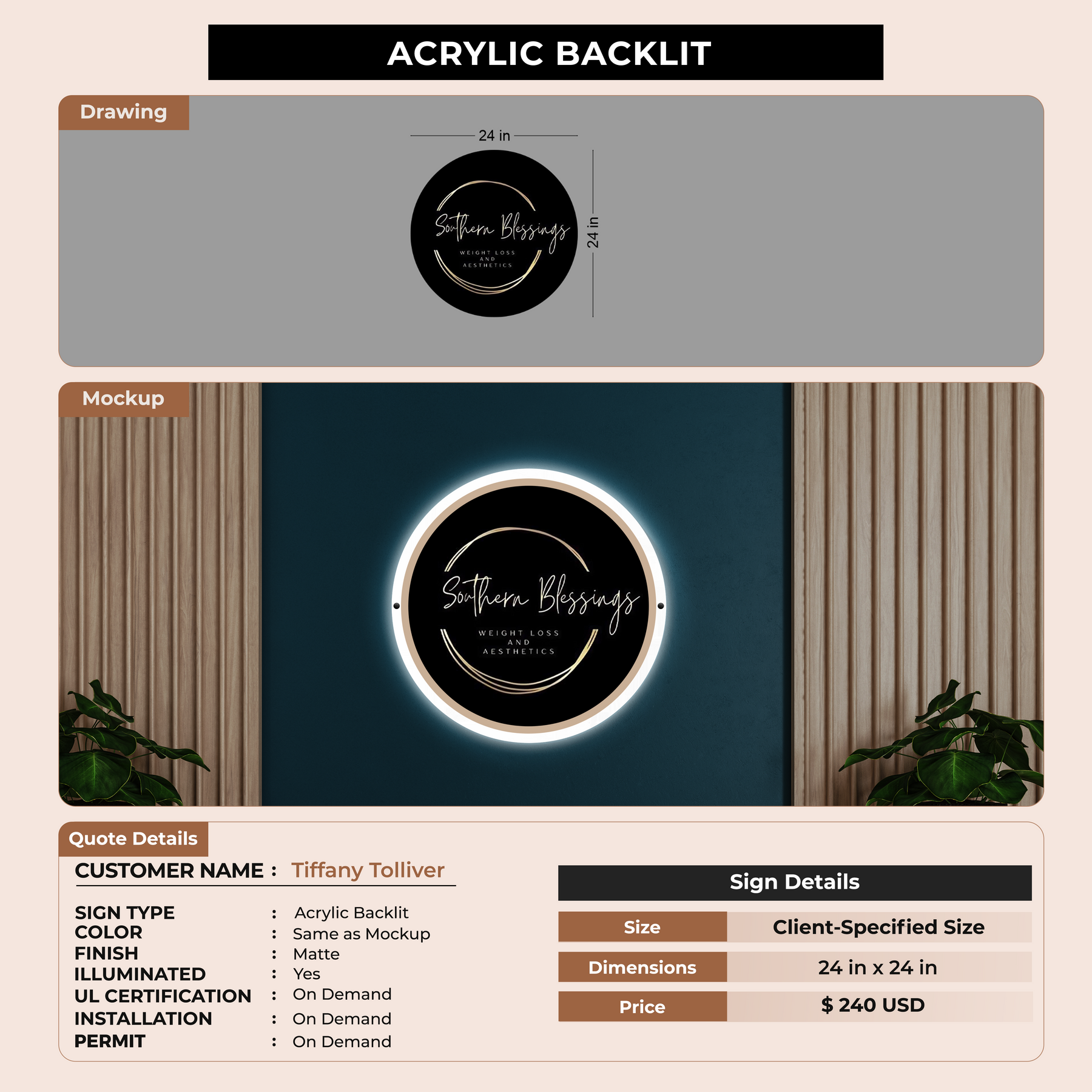 Neon Acrylic Sign For Tiffany Tolliver