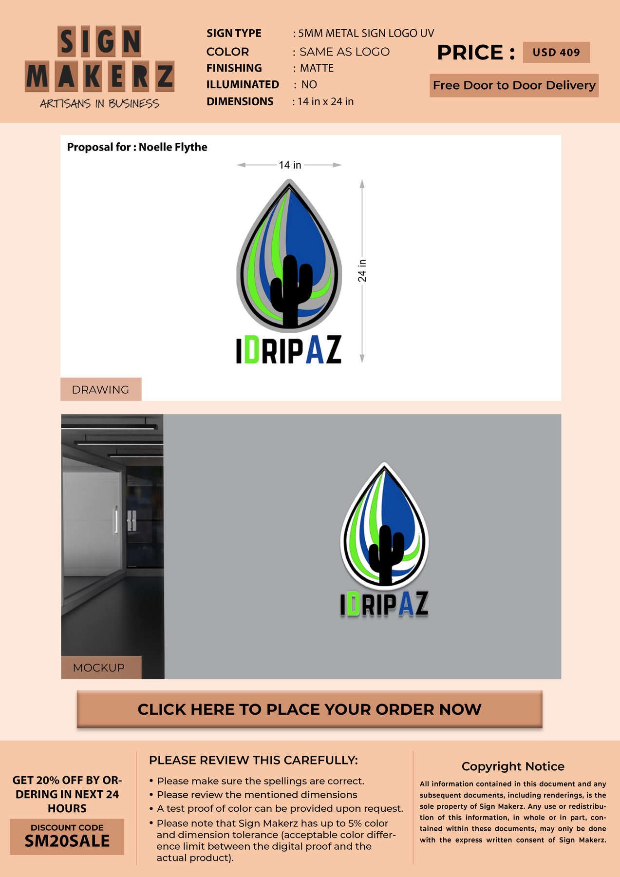 Crafted with premium material, this signage will elevate your business image, precisely mirroring your logo for a professional look.