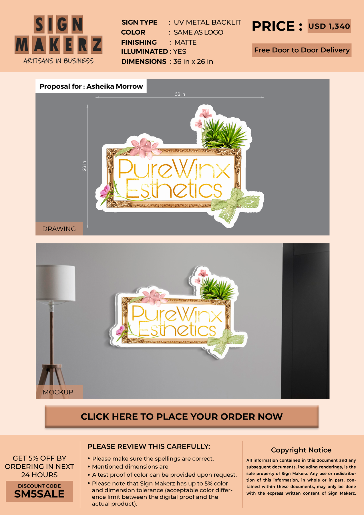 Crafted with premium material, this signage will elevate your business image, precisely mirroring your logo for a professional look.