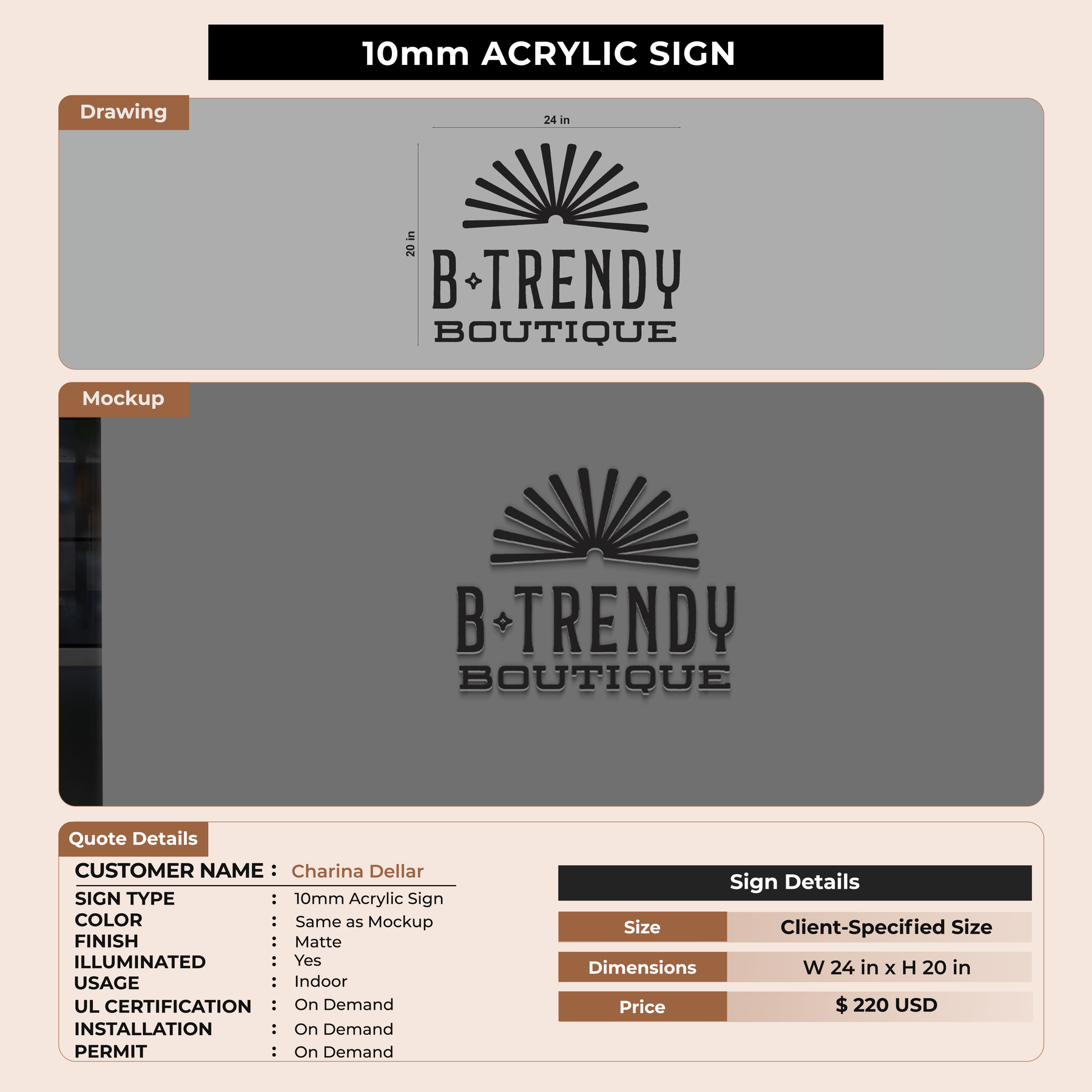 Enhance your business presence with our expertly crafted signage, made from top-quality material, to ensure longevity and durability. Fully customizable to reflect your unique brand identity, our signage offers a professional and polished appearance. Easy to install and low maintenance, it’s the perfect addition to any business setting. Trust us to deliver a product that not only meets but exceeds your expectations.