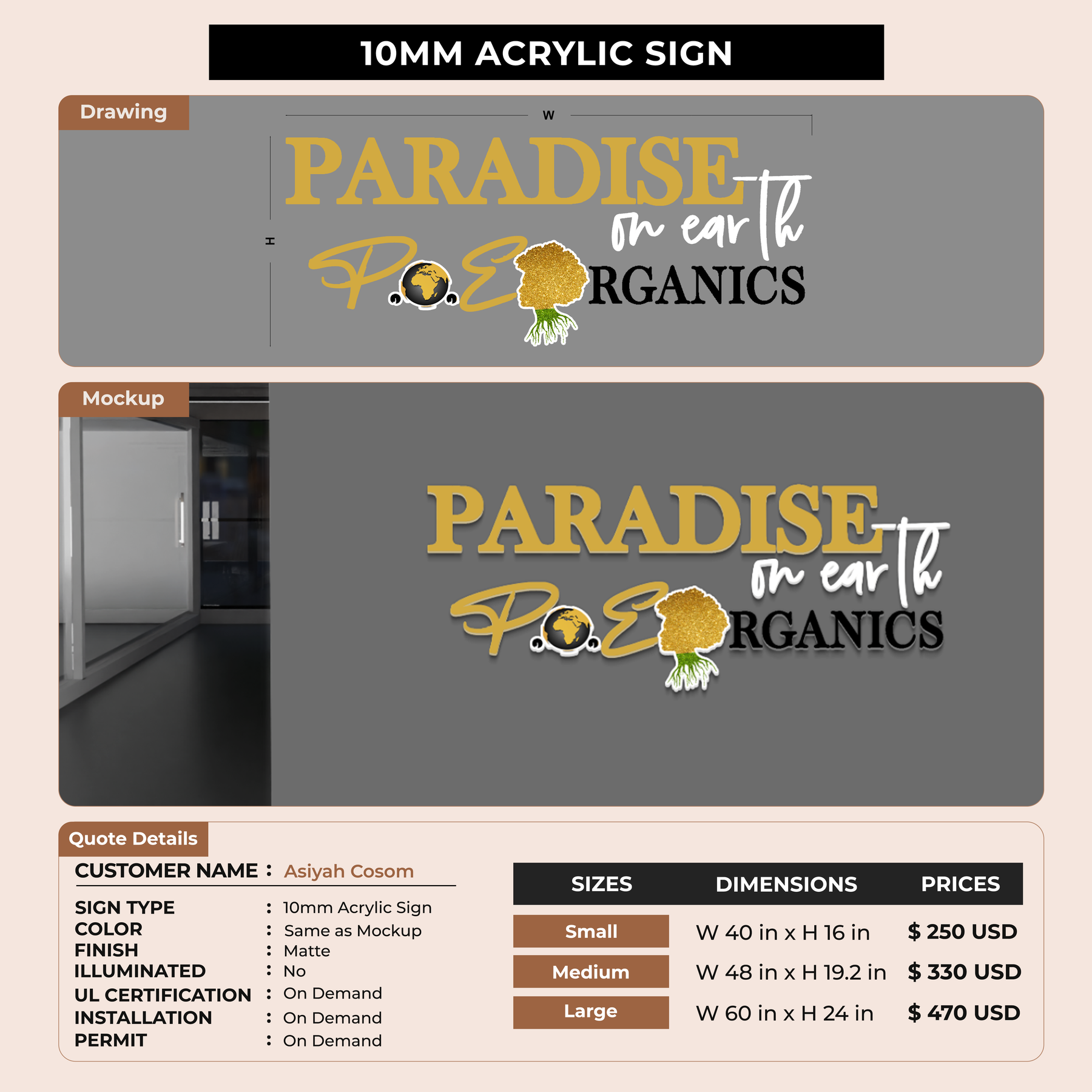 Enhance your business presence with our expertly crafted signage, made from top-quality material, to ensure longevity and durability. Fully customizable to reflect your unique brand identity, our signage offers a professional and polished appearance. Easy to install and low maintenance, it’s the perfect addition to any business setting. Trust us to deliver a product that not only meets but exceeds your expectations.