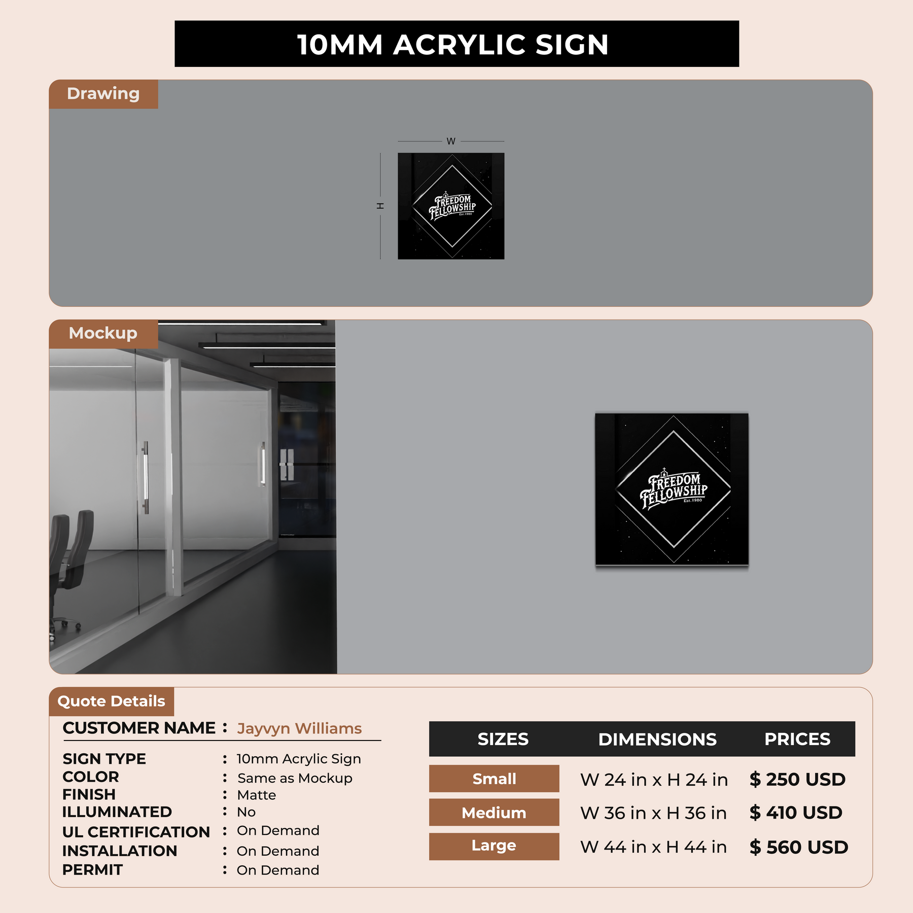 Enhance your business presence with our expertly crafted signage, made from top-quality material, to ensure longevity and durability. Fully customizable to reflect your unique brand identity, our signage offers a professional and polished appearance. Easy to install and low maintenance, it’s the perfect addition to any business setting. Trust us to deliver a product that not only meets but exceeds your expectations.
