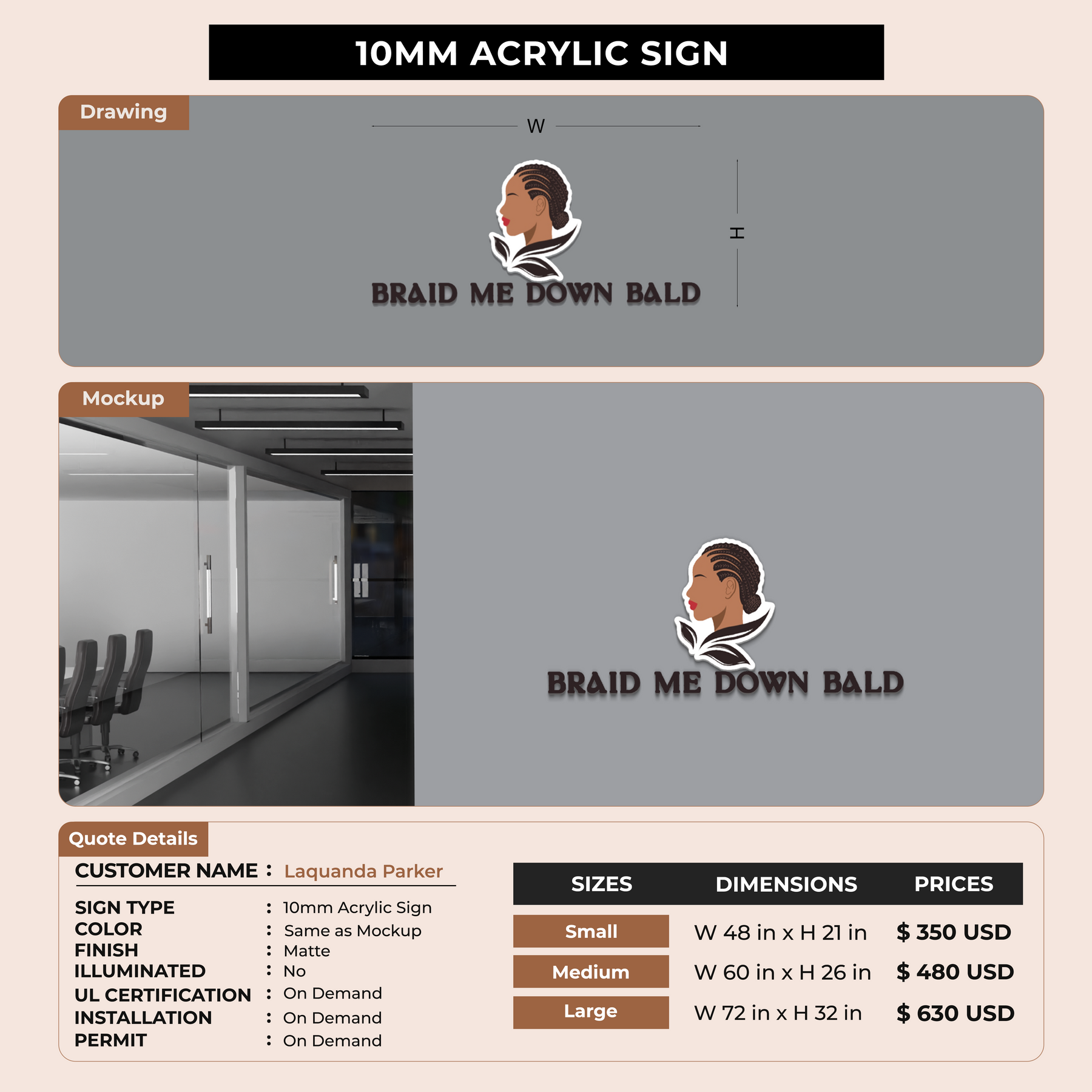 Enhance your business presence with our expertly crafted signage, made from top-quality material, to ensure longevity and durability. Fully customizable to reflect your unique brand identity, our signage offers a professional and polished appearance. Easy to install and low maintenance, it’s the perfect addition to any business setting. Trust us to deliver a product that not only meets but exceeds your expectations.