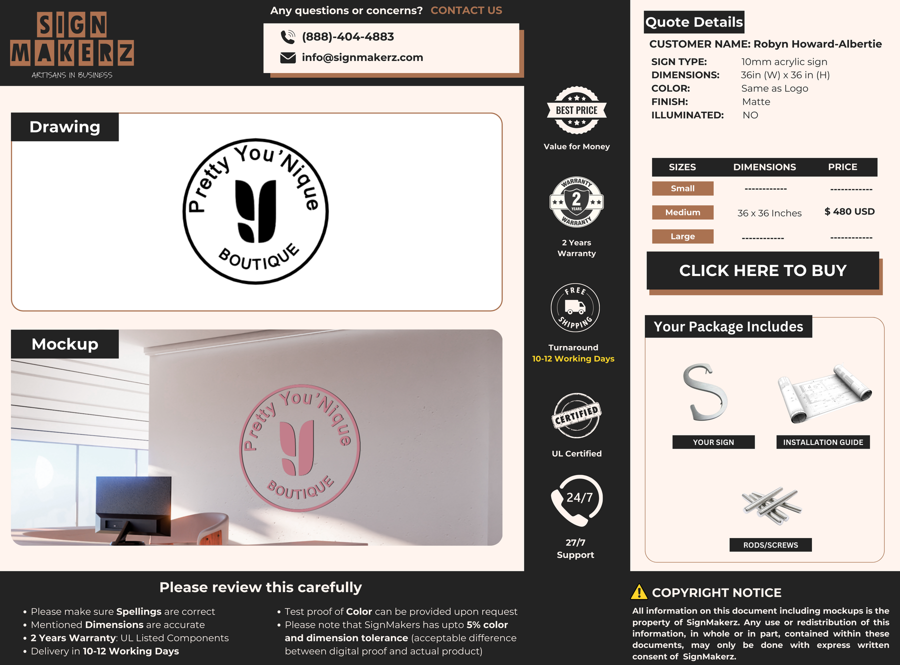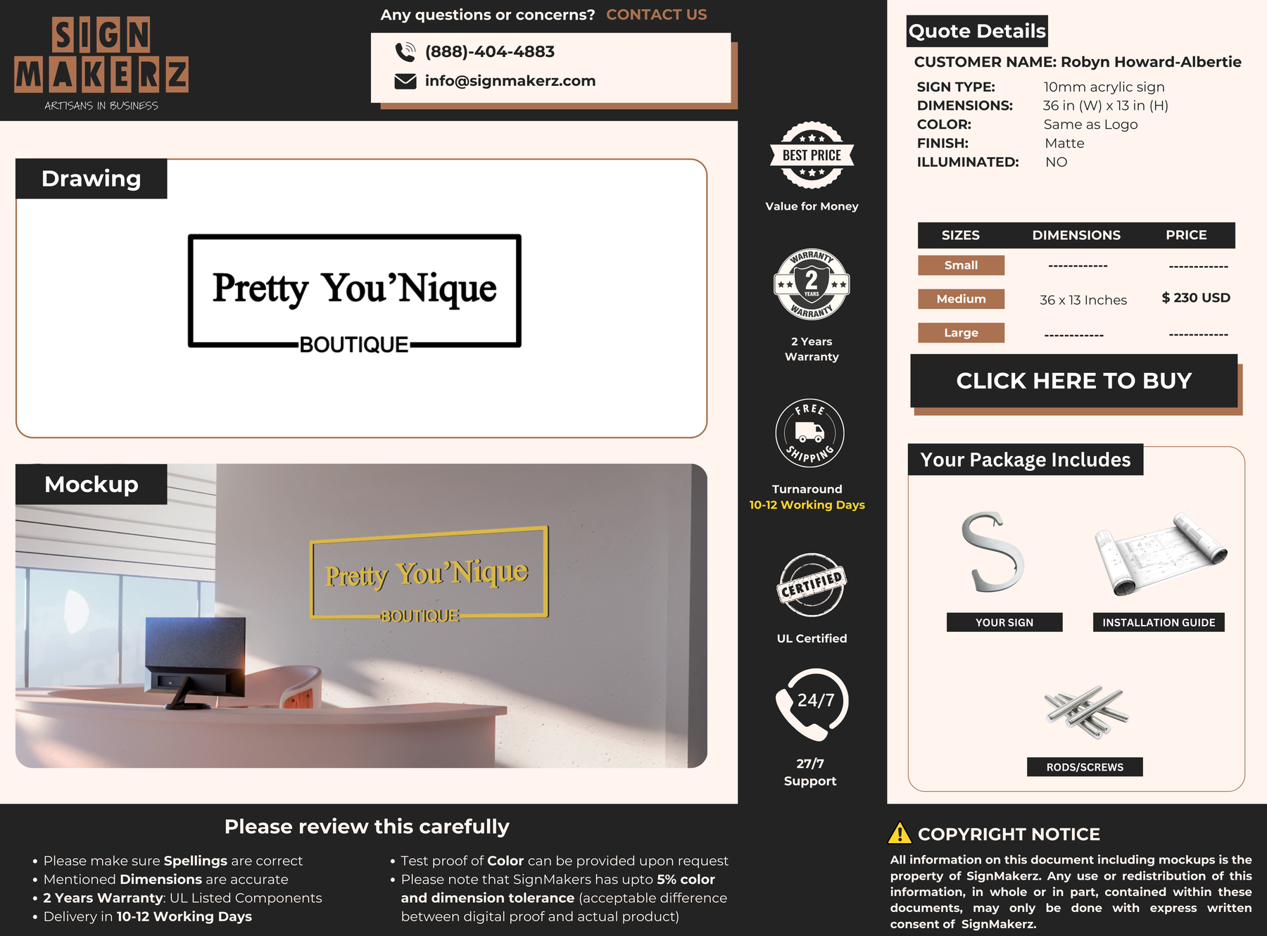 Crafted with premium material, this signage will elevate your business image, precisely mirroring your logo for a professional look.