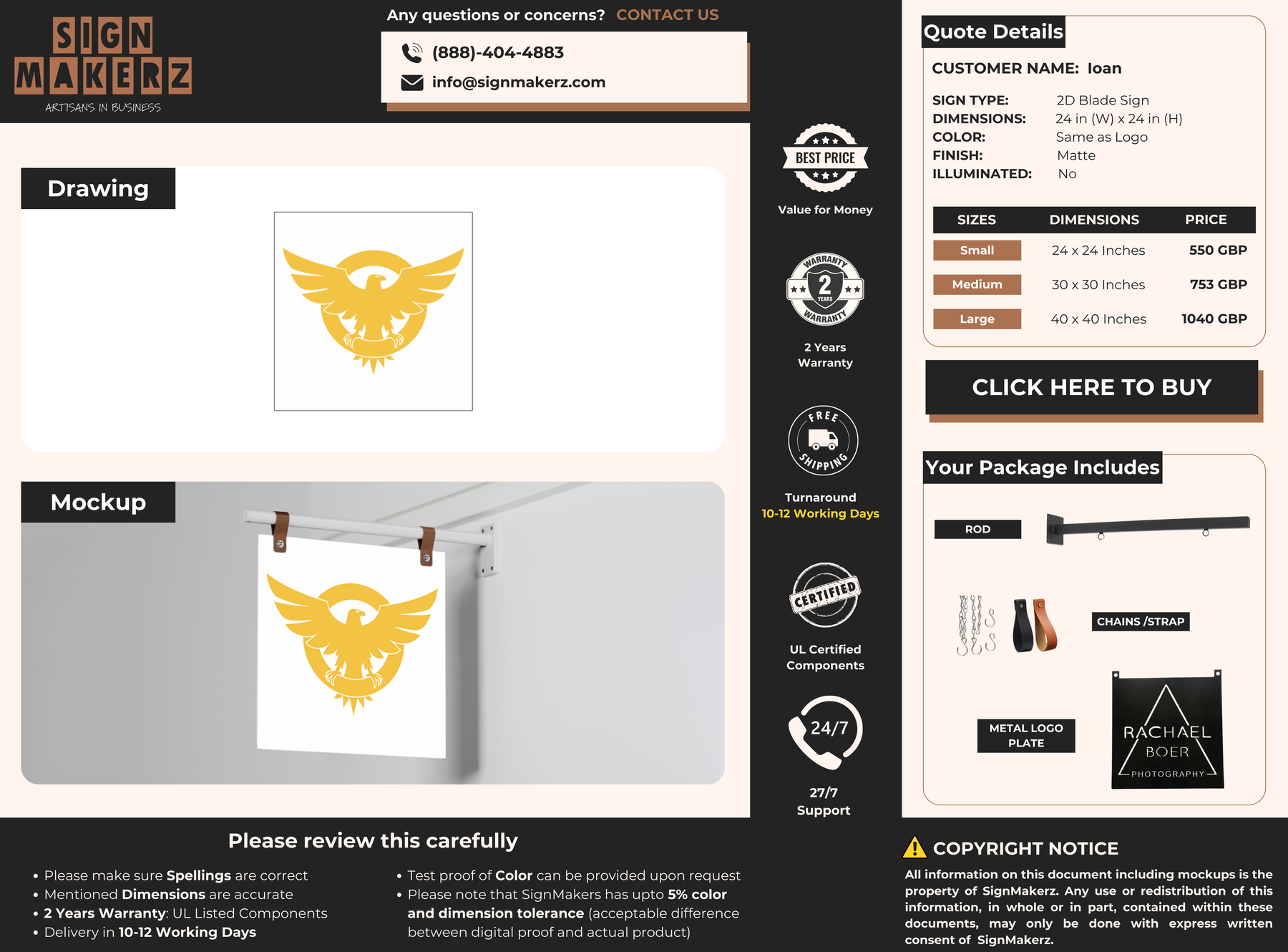Crafted with premium material, this signage will elevate your business image, precisely mirroring your logo for a professional look.