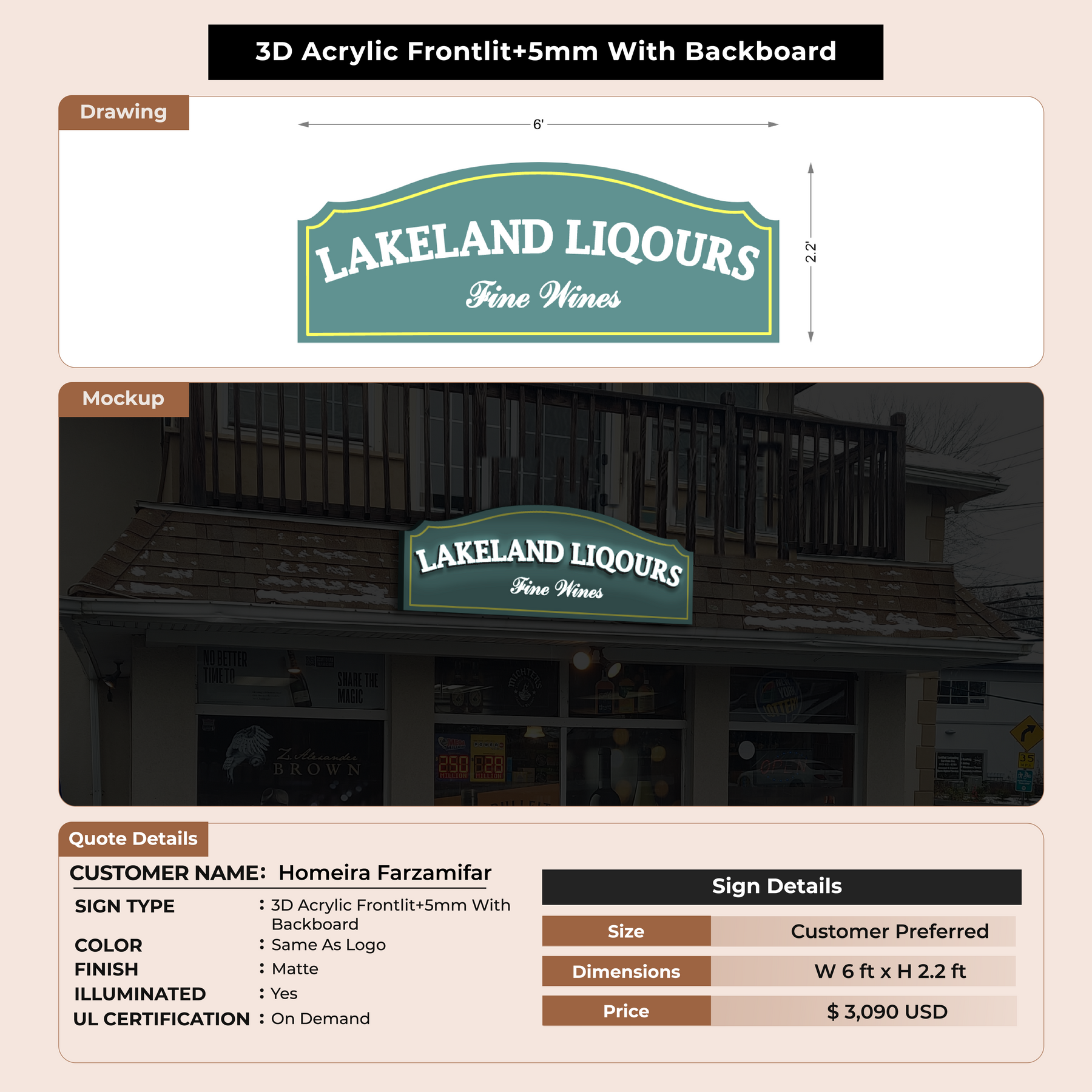 3D Acrylic Front-lit+5mm With Backboard for Homeira Farzamifar