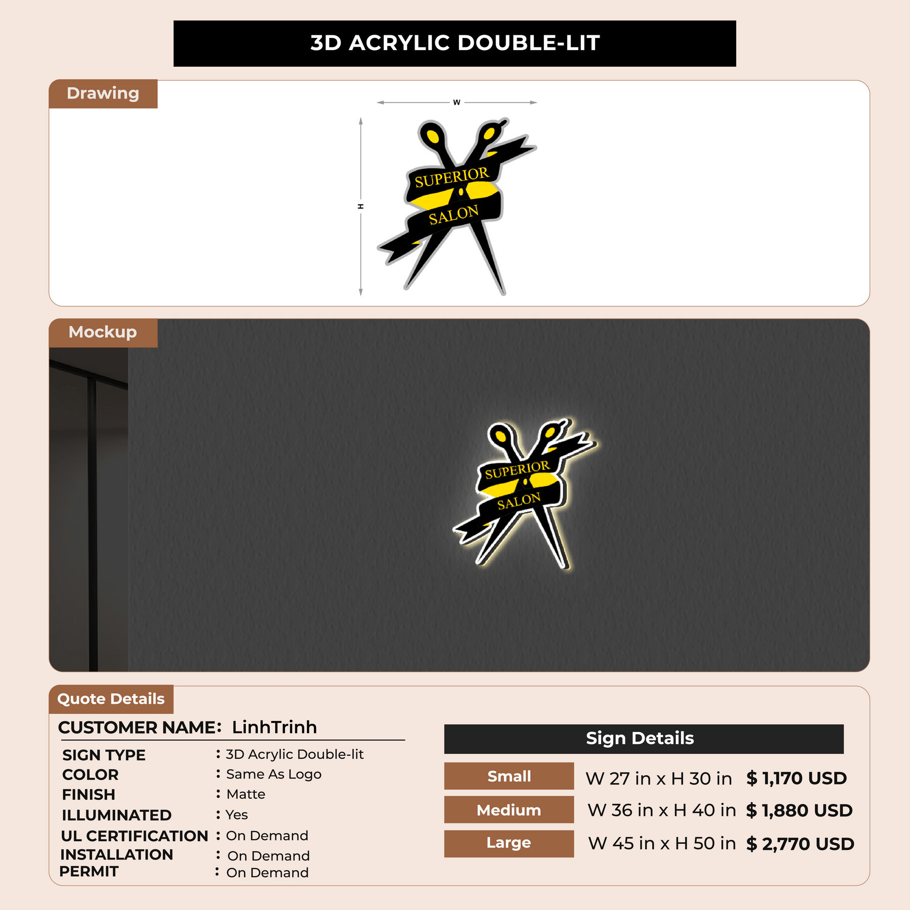 3D Acrylic Double-lit Sign For LinhTrinh