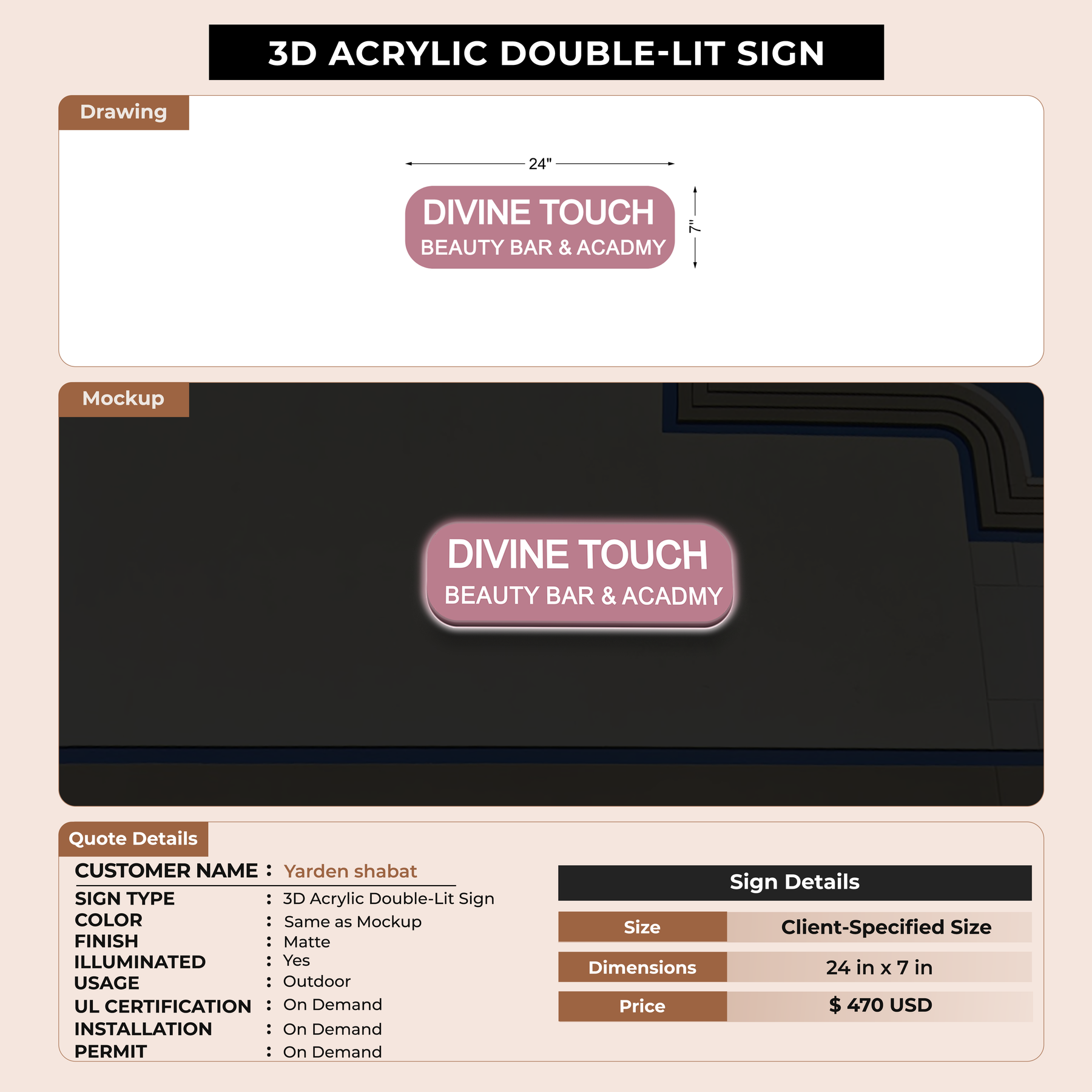 Crafted with premium material, this signage will elevate your business image, precisely mirroring your logo for a professional look.