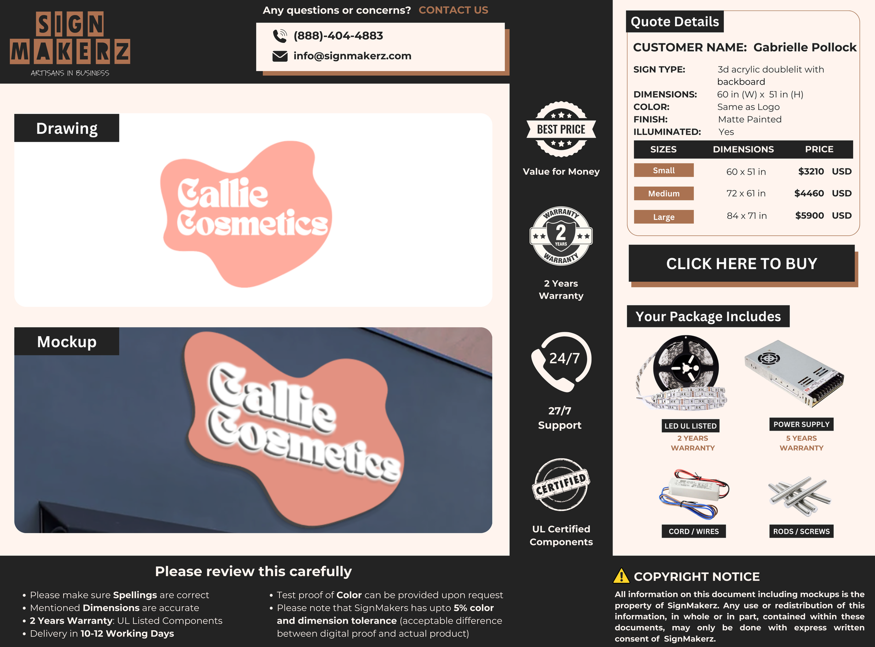 Enhance your business presence with our expertly crafted signage, made from top-quality material, to ensure longevity and durability. Fully customizable to reflect your unique brand identity, our signage offers a professional and polished appearance. Easy to install and low maintenance, it’s the perfect addition to any business setting. Trust us to deliver a product that not only meets but exceeds your expectations.