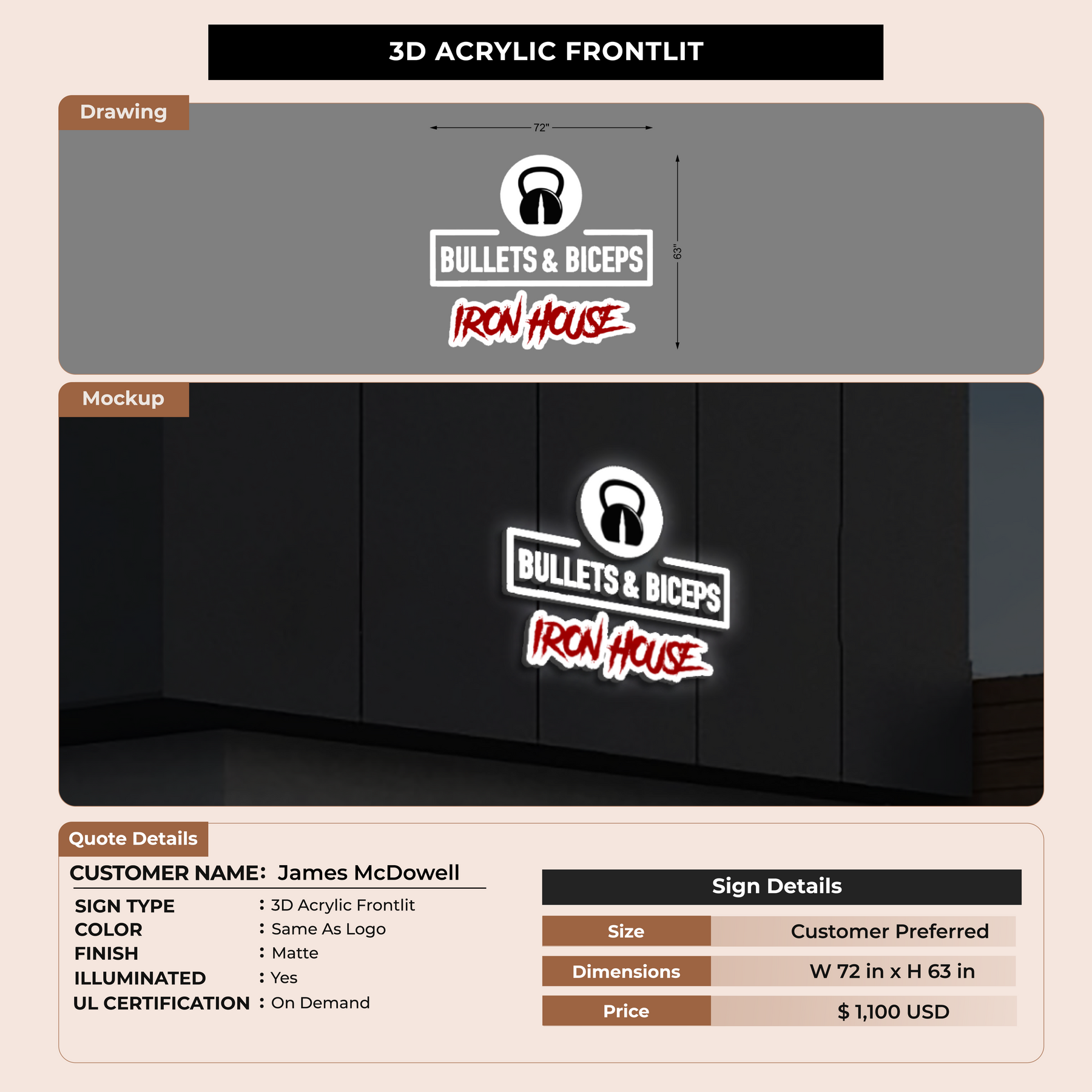 3D Acrylic Front-lit Sign For James McDowell (Size Change)