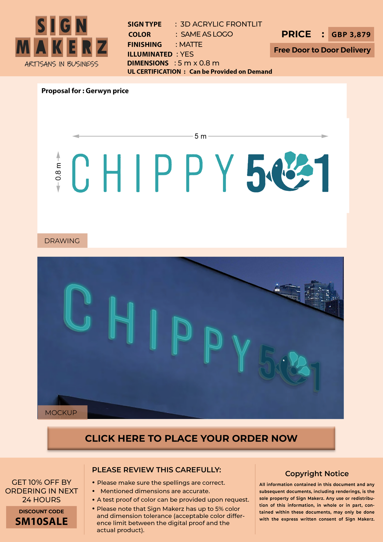 Crafted with premium material, this signage will elevate your business image, precisely mirroring your logo for a professional look.