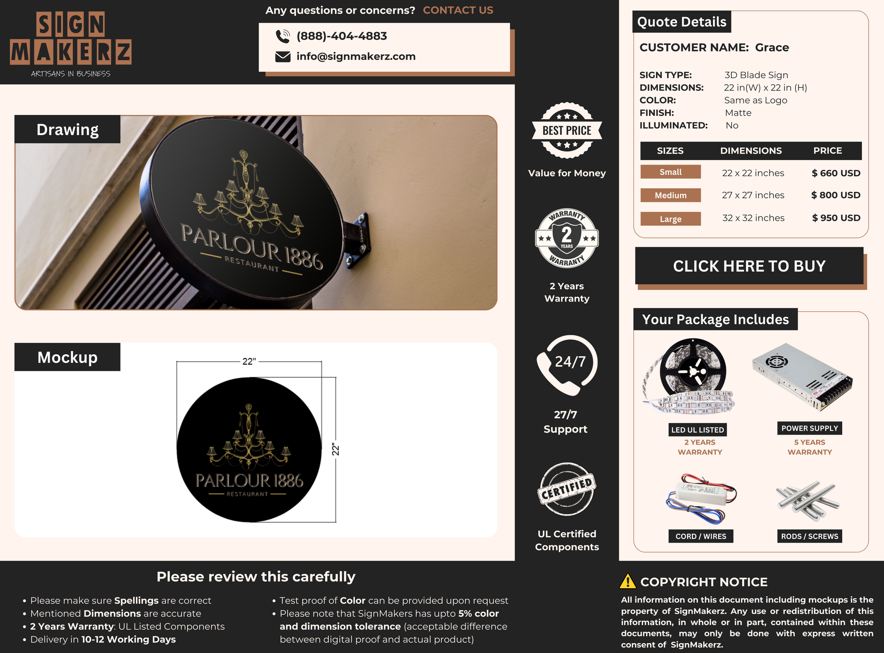 Crafted with premium material, this signage will elevate your business image, precisely mirroring your logo for a professional look.