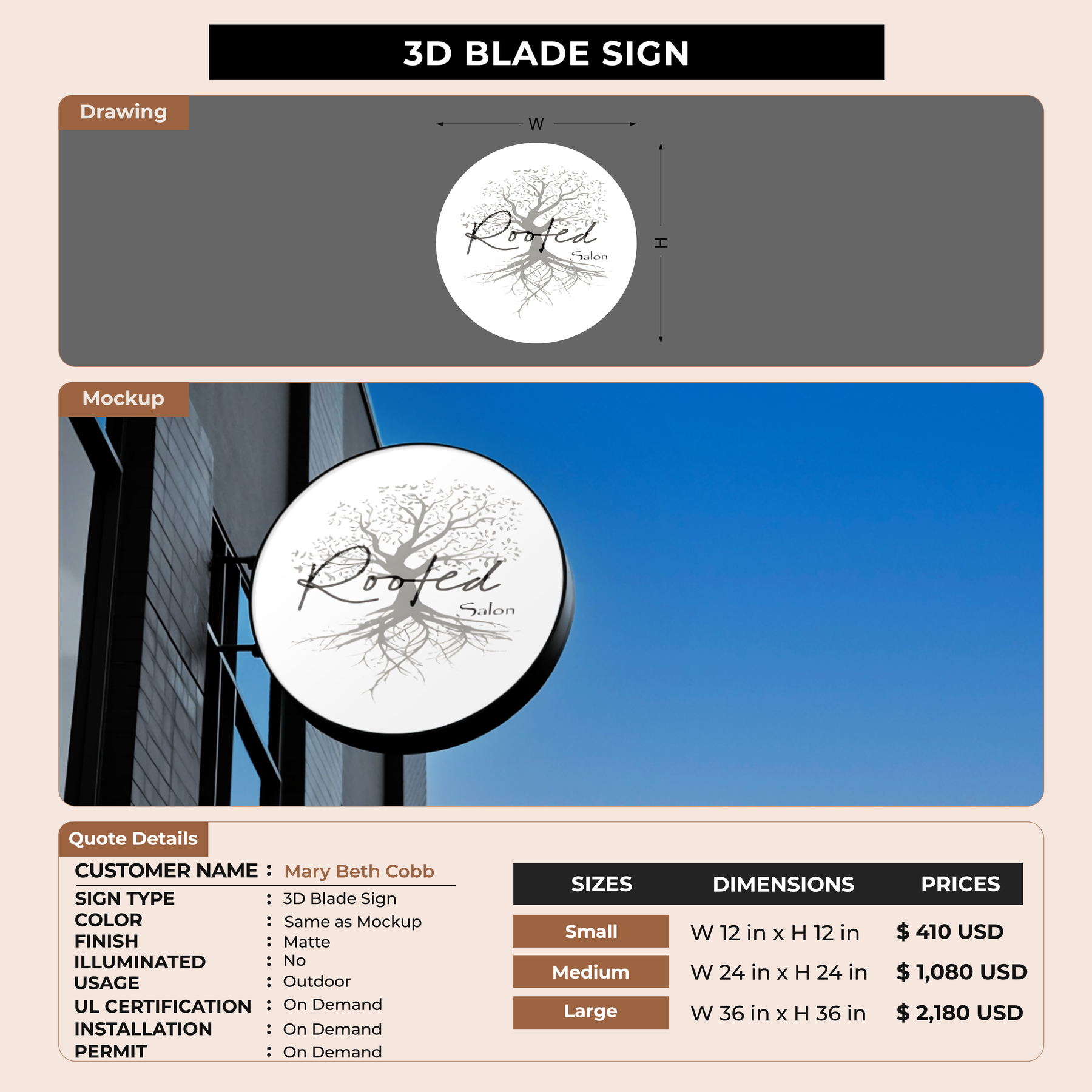 3D Blade Sign For Mary Beth Cobb