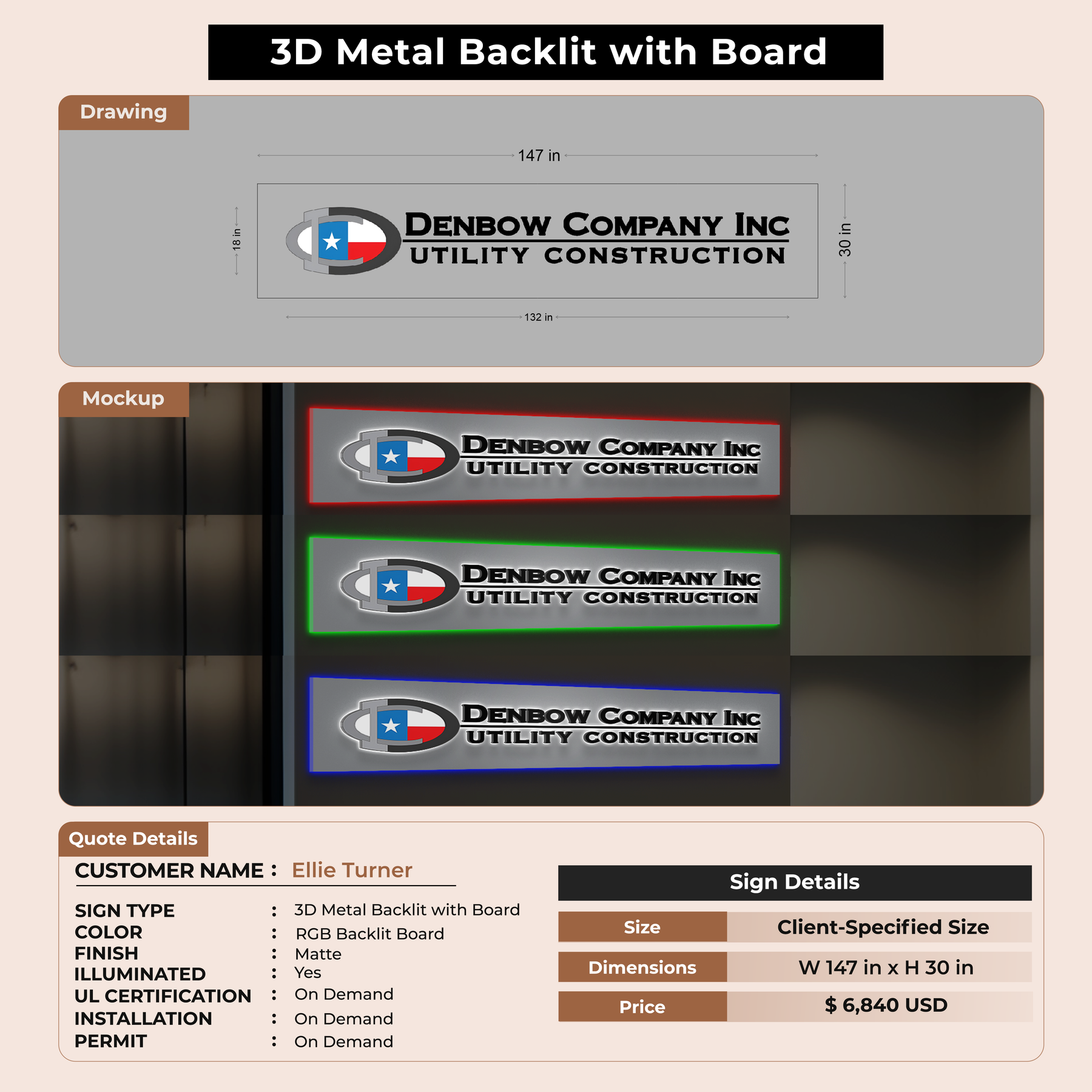 3D Metal Back-lit With Backboard Sign For Ellie Turner