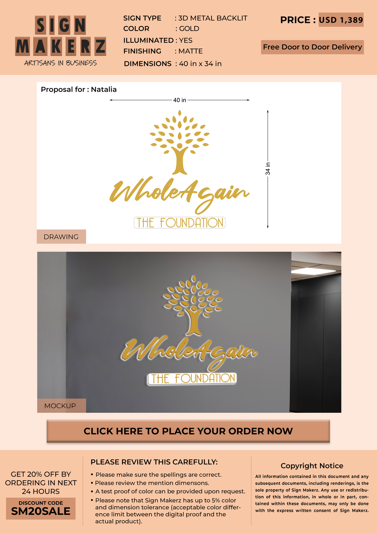 Crafted with premium material, this signage will elevate your business image, precisely mirroring your logo for a professional look.