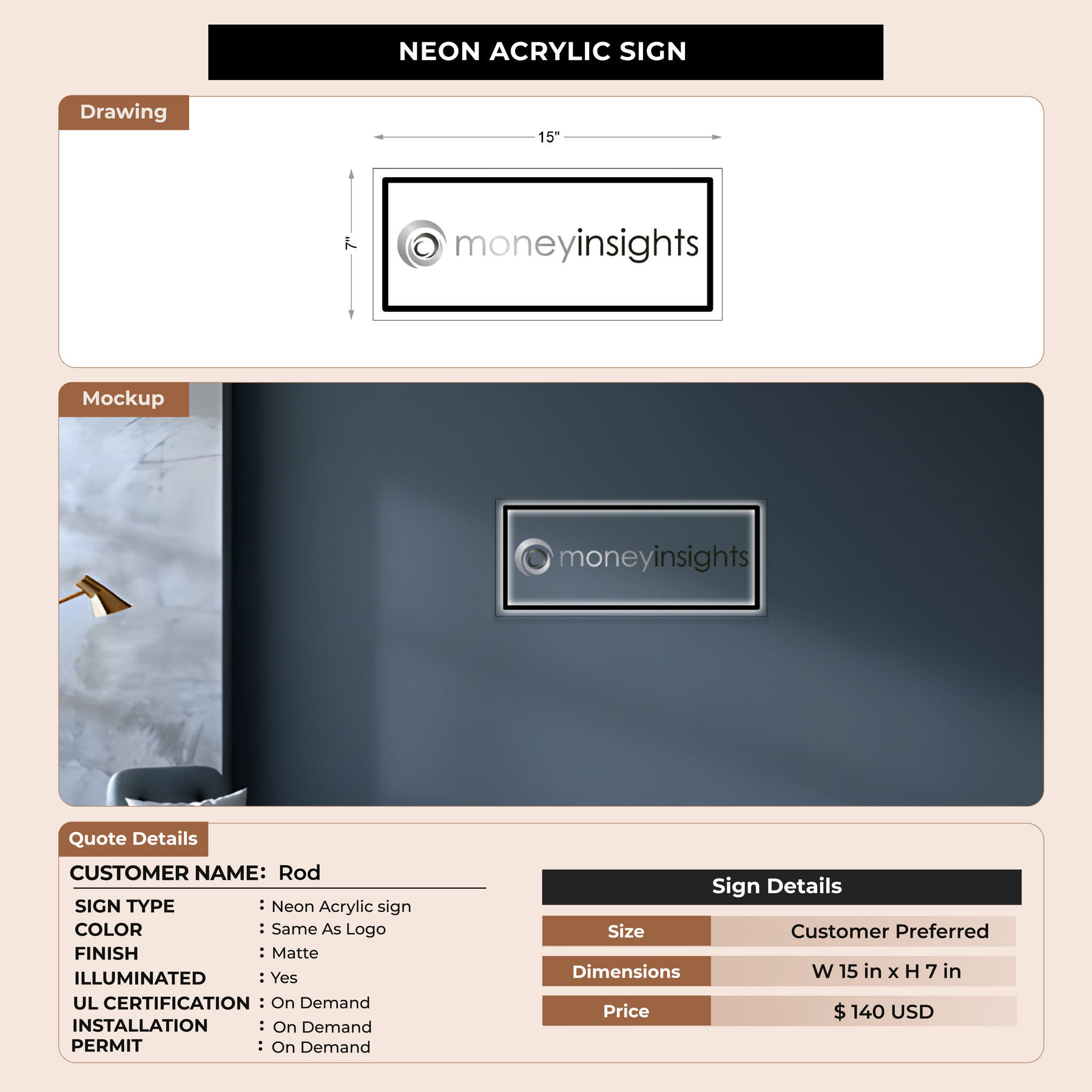 Neon Acrylic Sign for Rod
