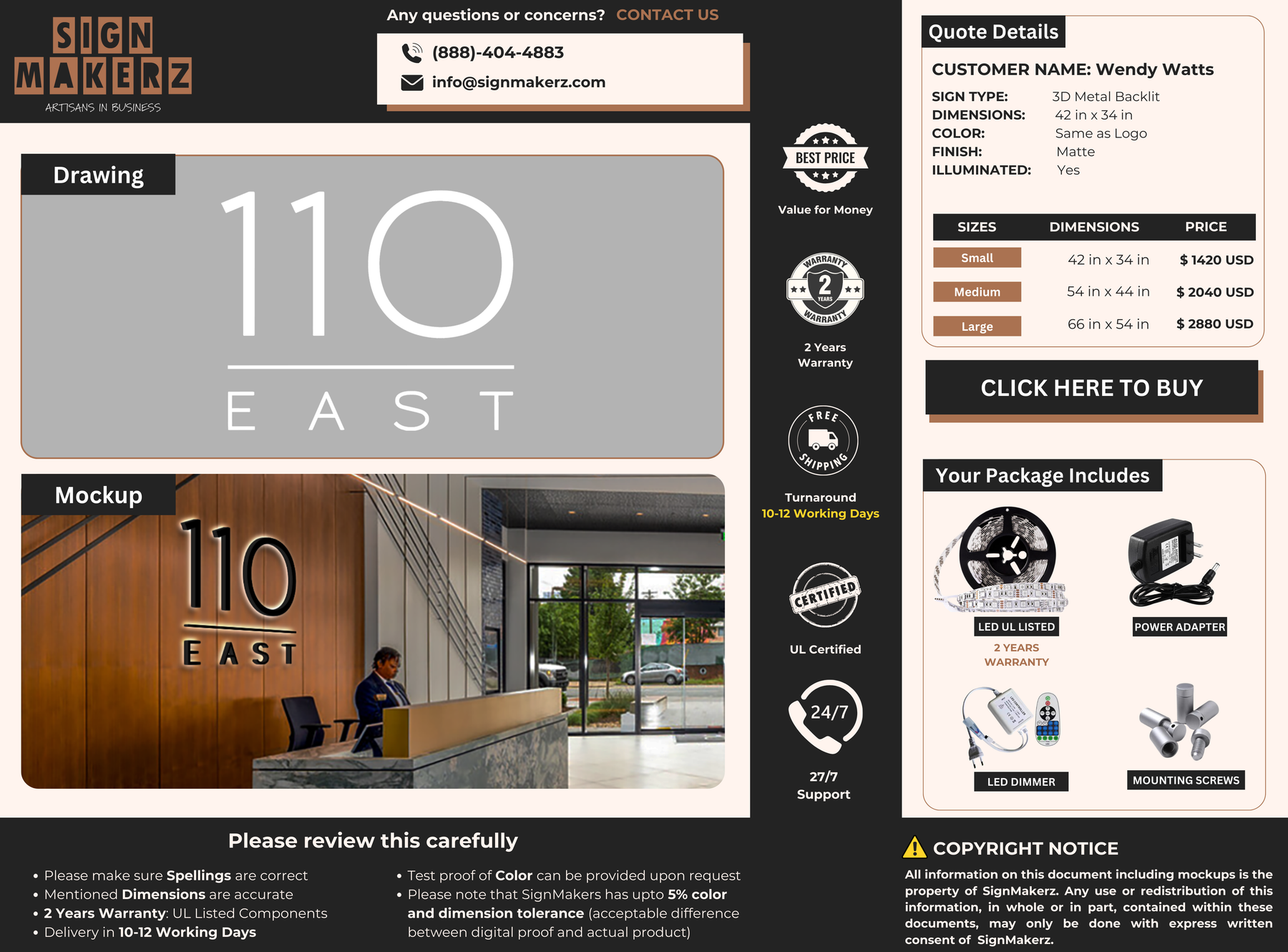 Crafted with premium material, this signage will elevate your business image, precisely mirroring your logo for a professional look.