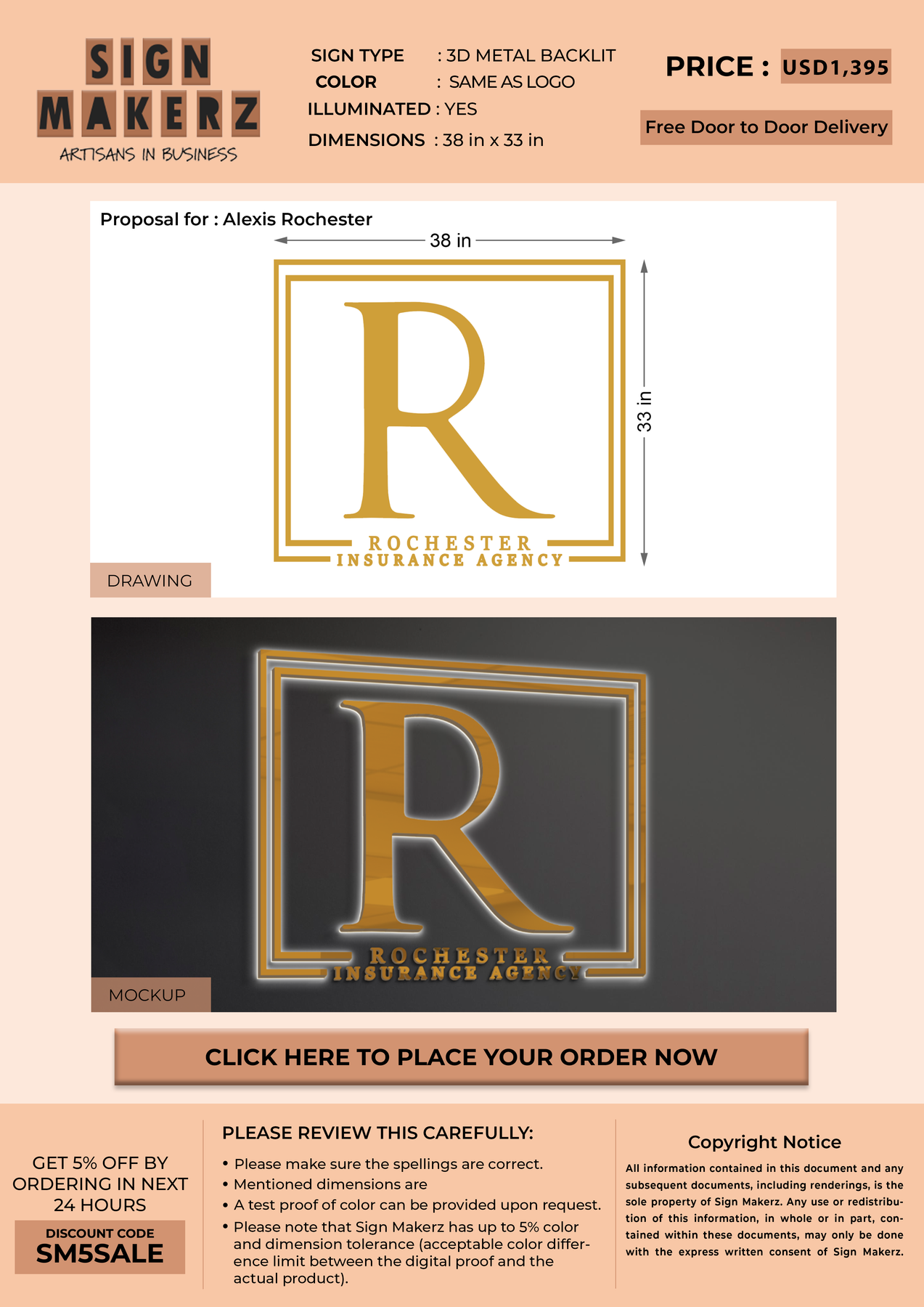 3d Metal Backlit Sign for Alexis Rochester Rochester