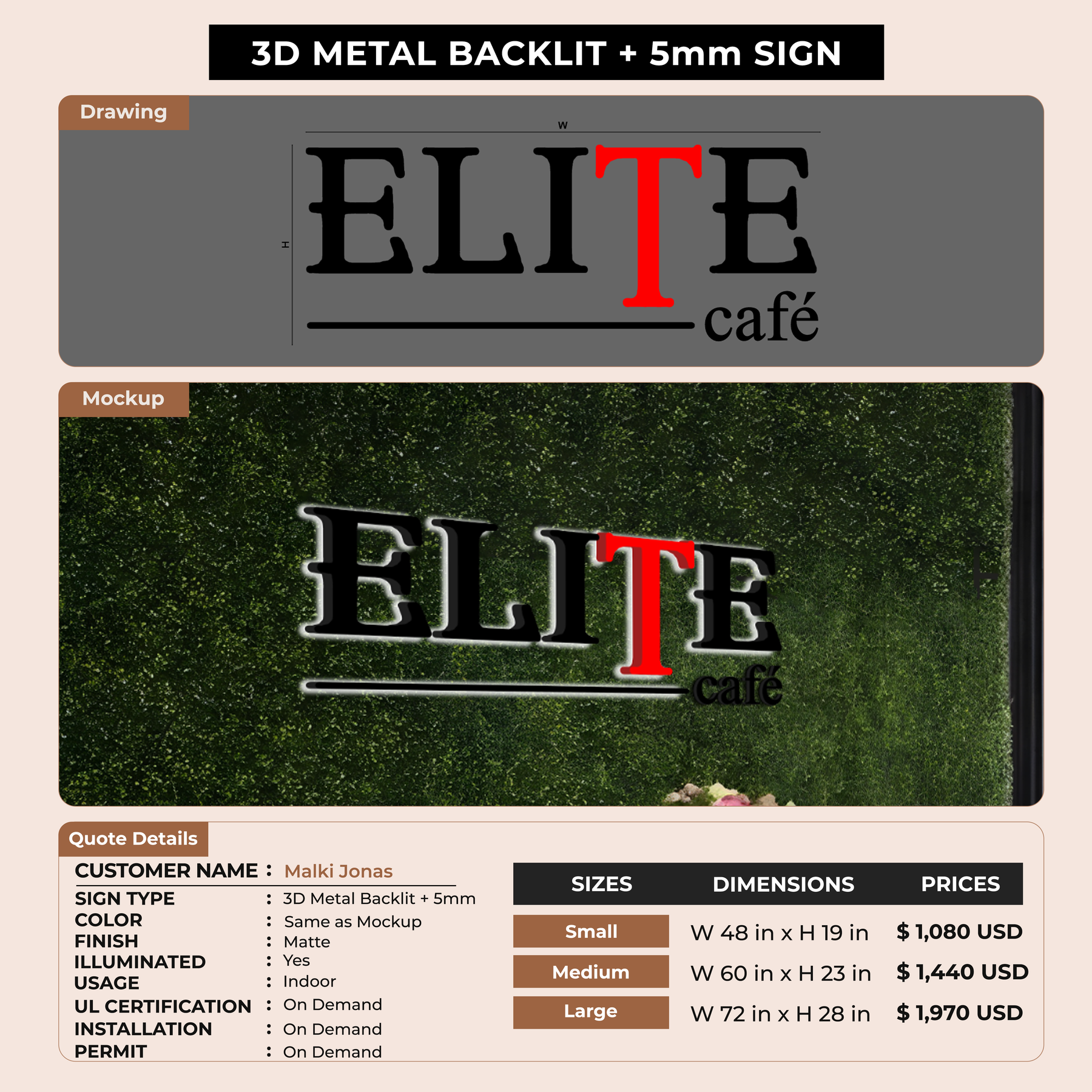 3D Metal Backlit + 5mm Sign for Malki Jonas