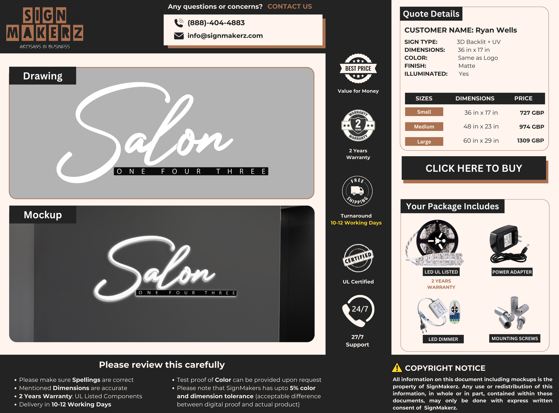Crafted with premium material, this signage will elevate your business image, precisely mirroring your logo for a professional look.