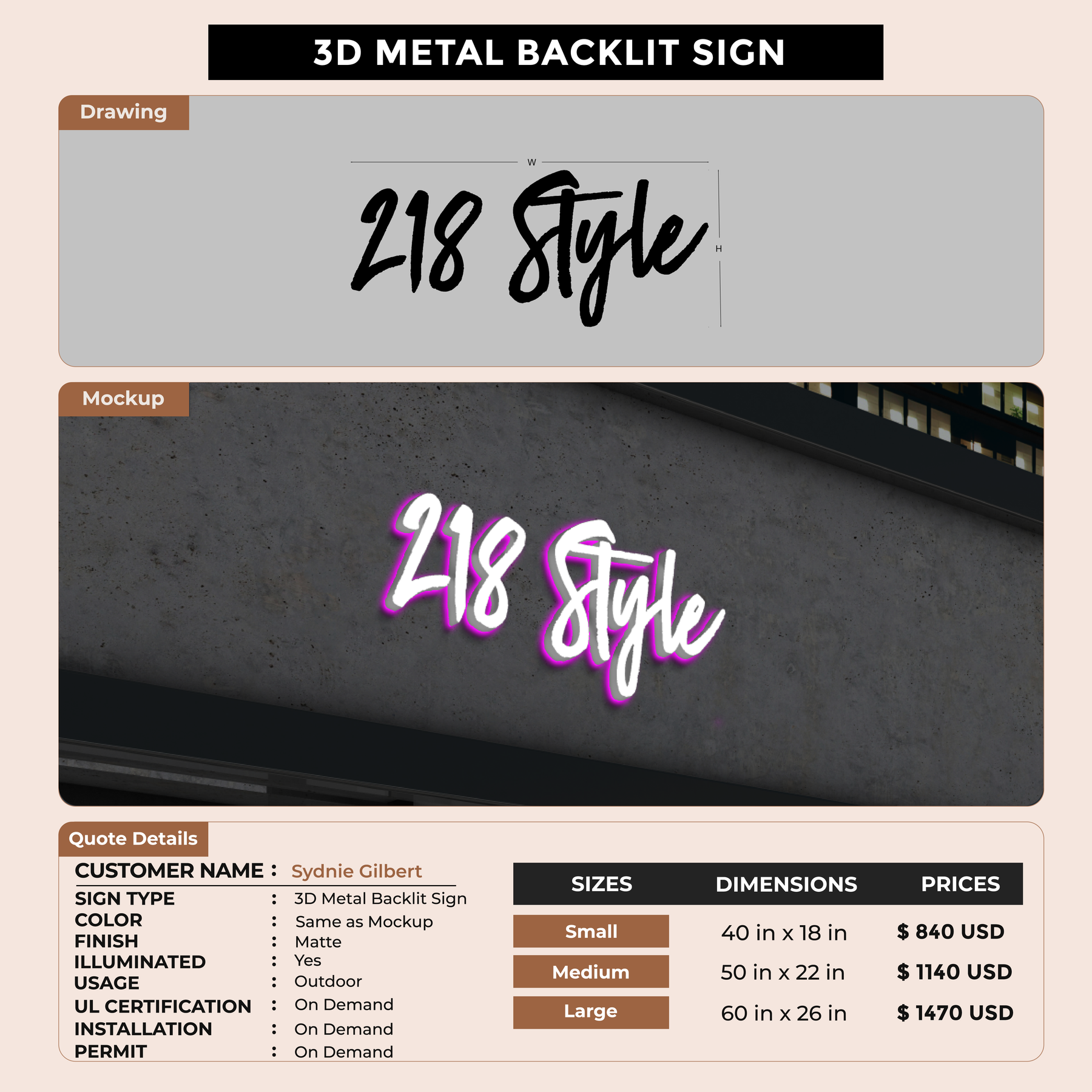 Crafted with premium material, this signage will elevate your business image, precisely mirroring your logo for a professional look.