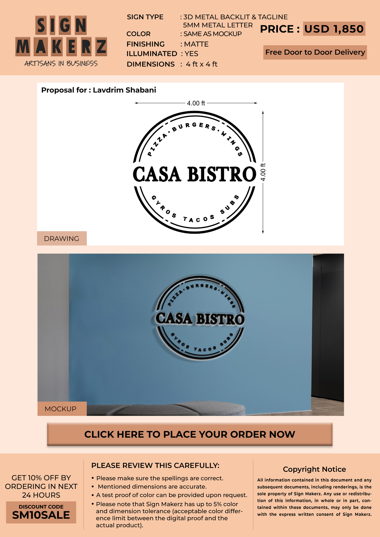 3D Metal Backlit Sign With 5MM Metal Letters For Lavdrim Shabani