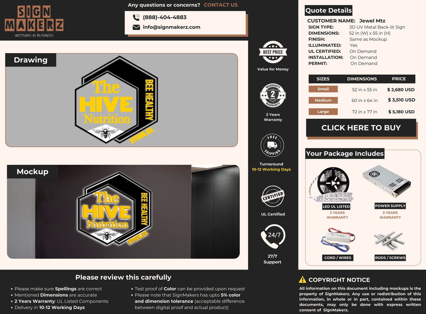 3D UV Metal Back-lit Sign For Jewel Mtz