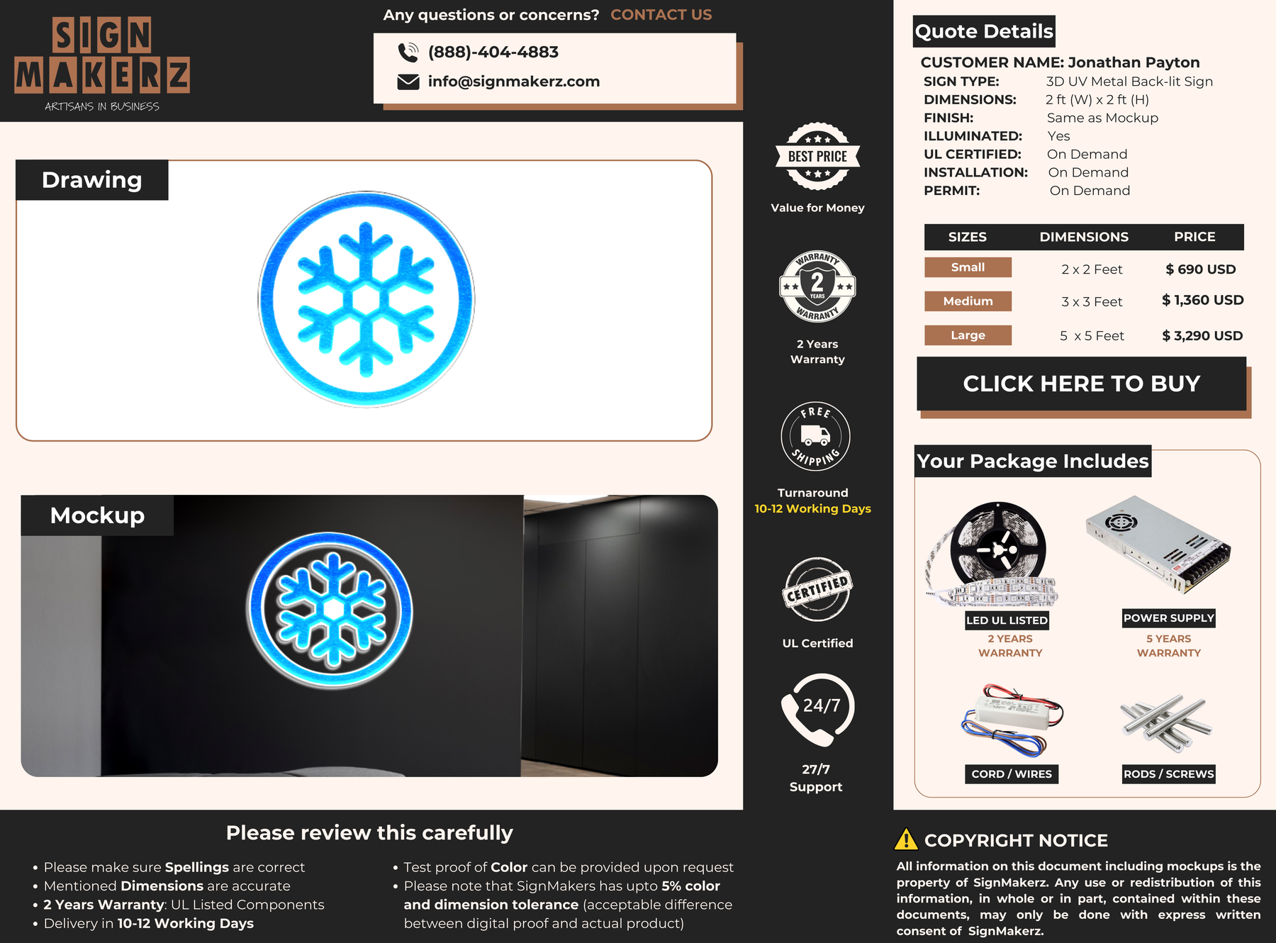 3D UV Metal Back-lit Sign For Jonathan Payton