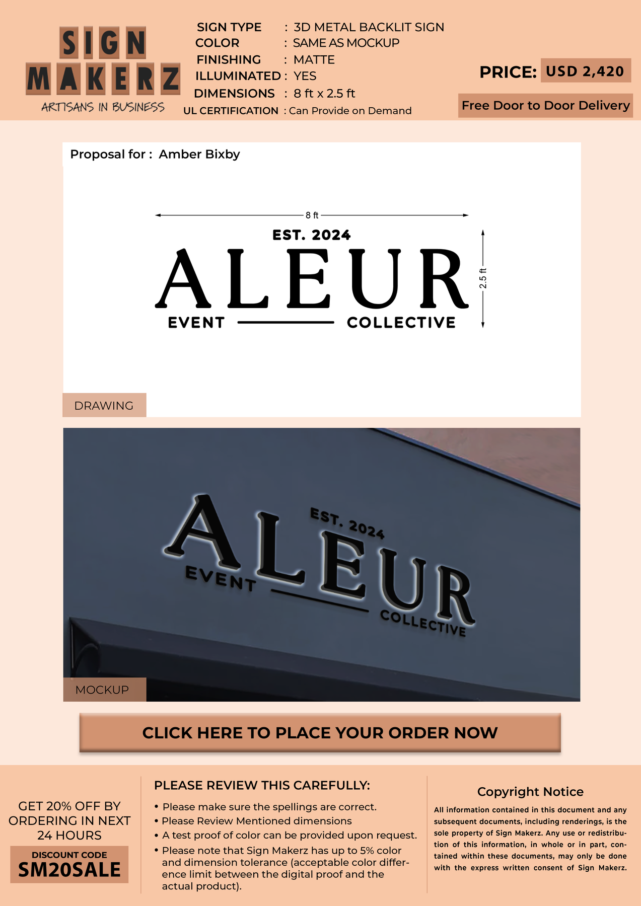 Crafted with premium material, this signage will elevate your business image, precisely mirroring your logo for a professional look.