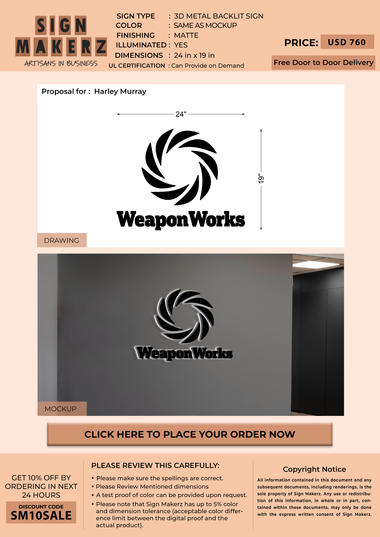 3D Metal Backlit sign for Harley Murray