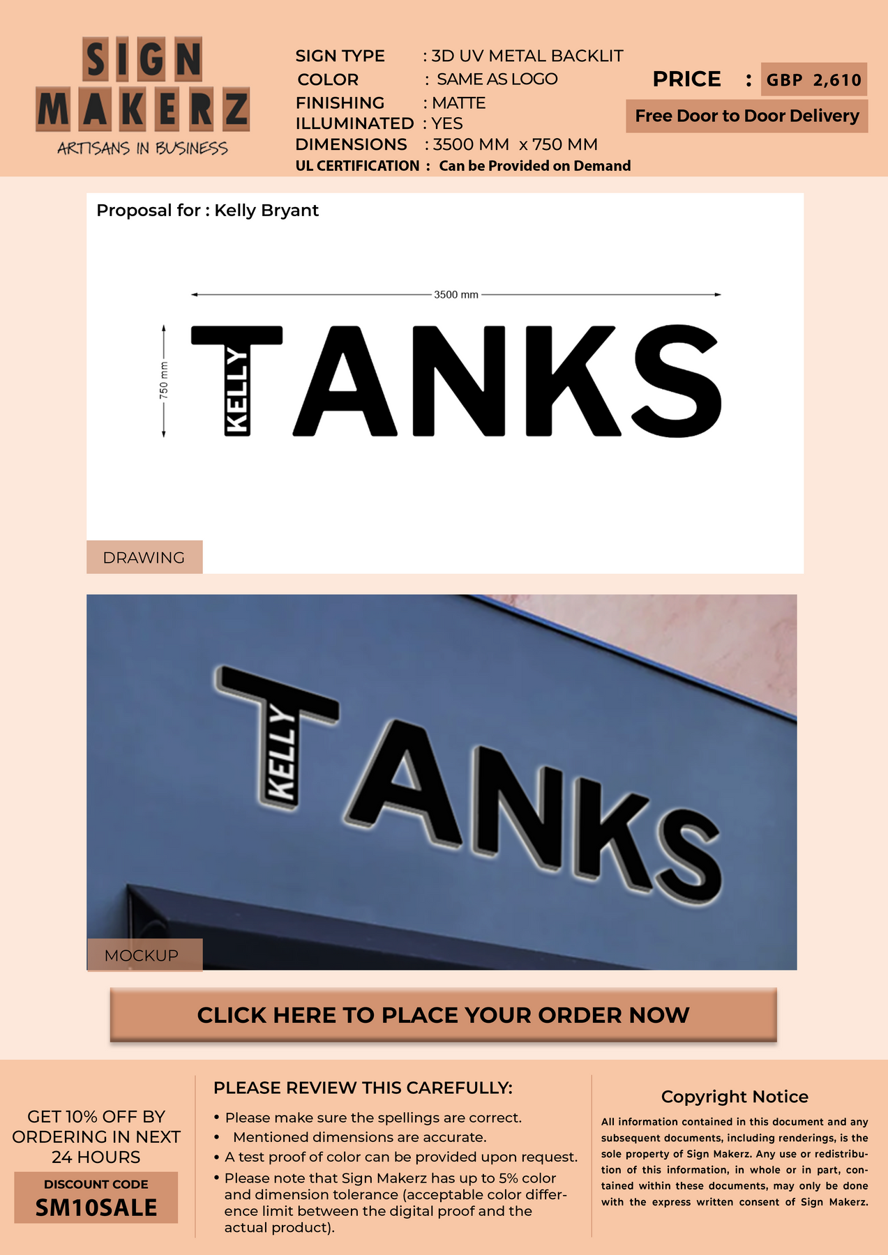 Crafted with premium material, this signage will elevate your business image, precisely mirroring your logo for a professional look.