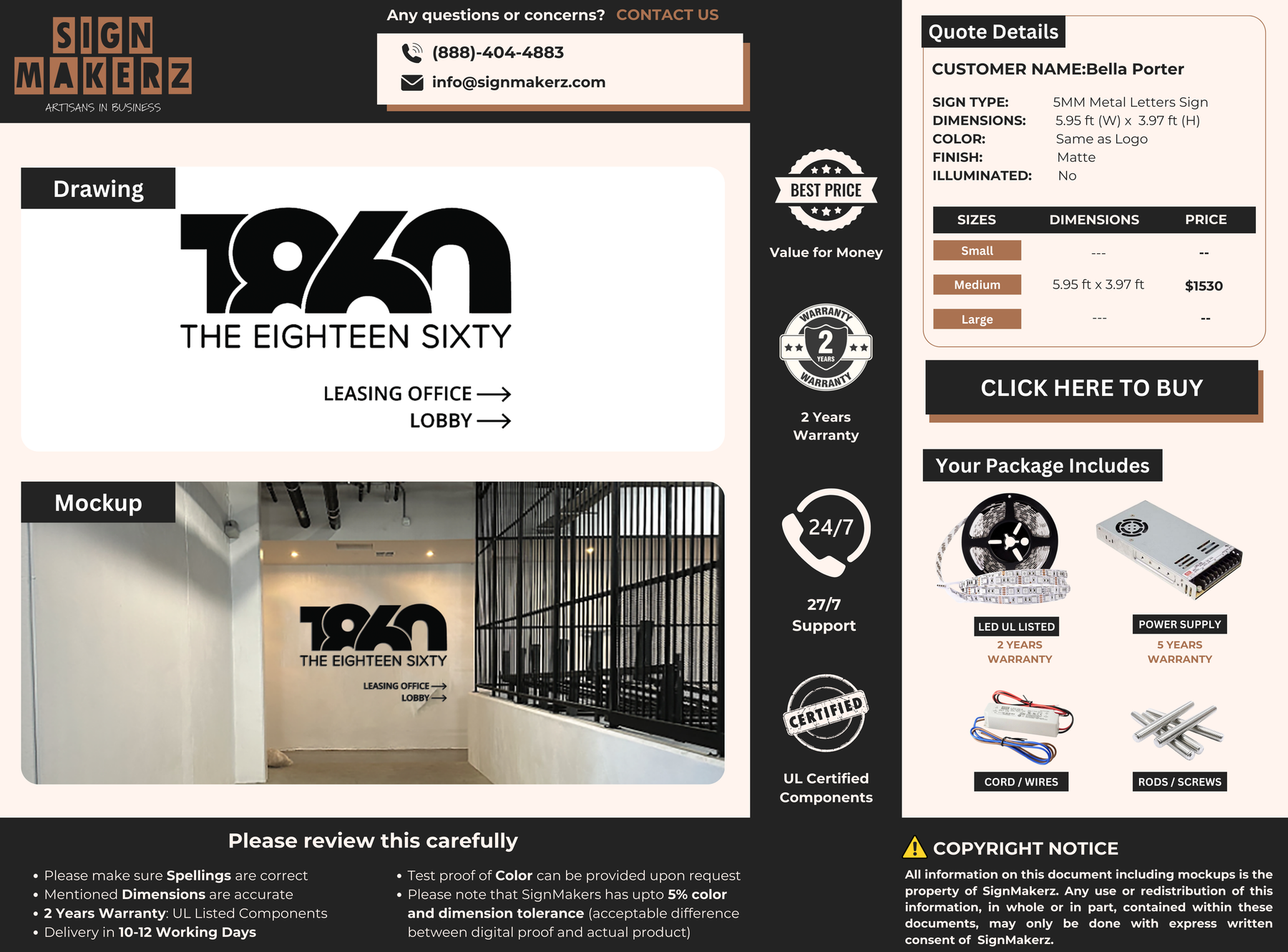 Enhance your business presence with our expertly crafted signage, made from top-quality material, to ensure longevity and durability. Fully customizable to reflect your unique brand identity, our signage offers a professional and polished appearance. Easy to install and low maintenance, it’s the perfect addition to any business setting. Trust us to deliver a product that not only meets but exceeds your expectations.