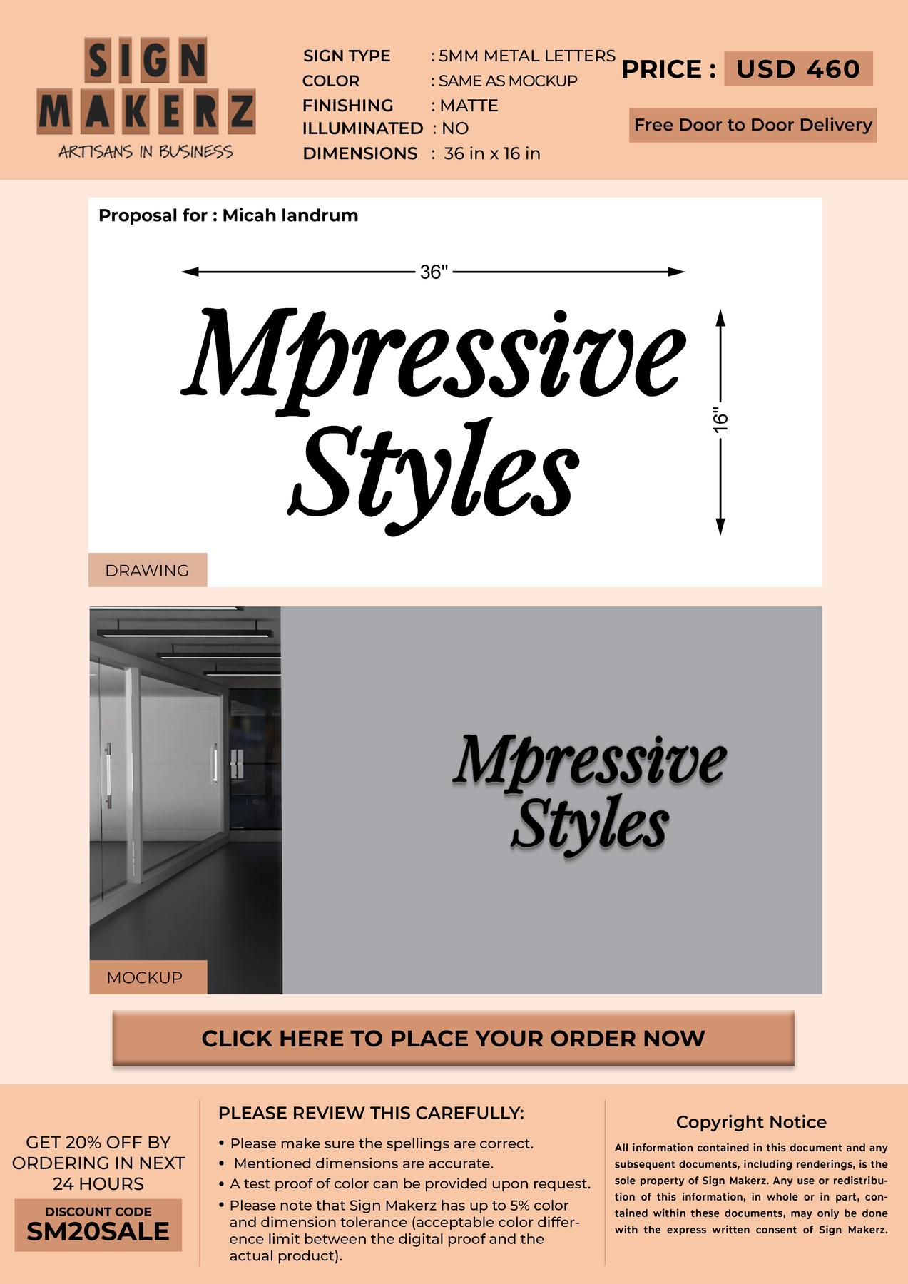 Crafted with premium material, this signage will elevate your business image, precisely mirroring your logo for a professional look.