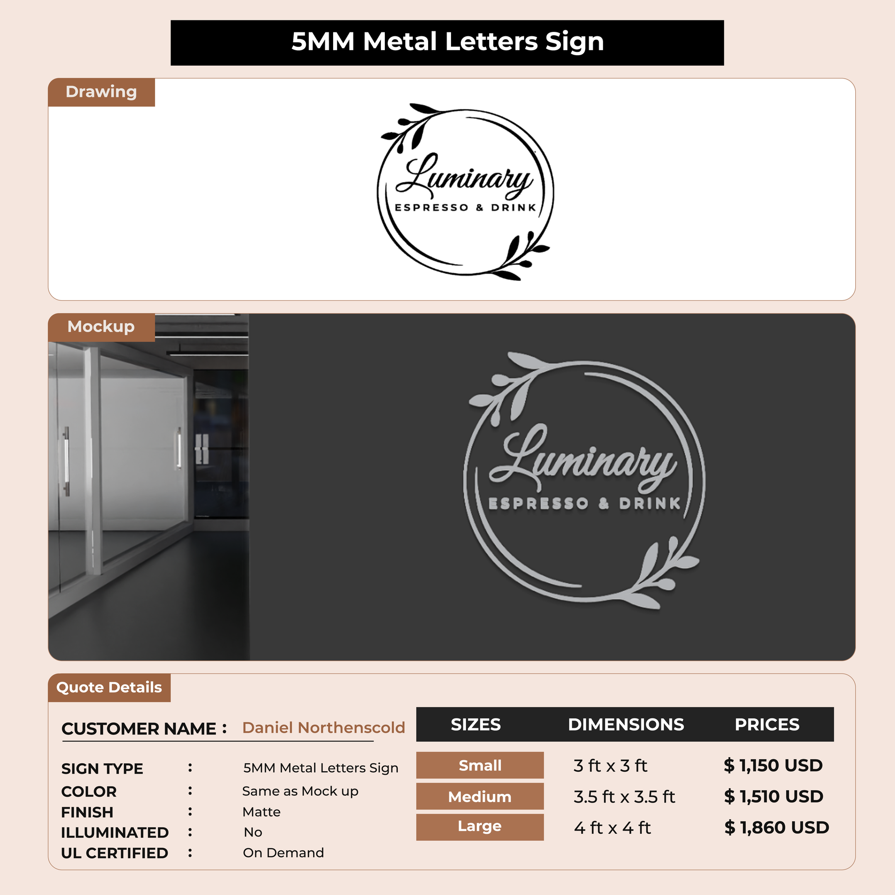 Crafted with premium material, this signage will elevate your business image, precisely mirroring your logo for a professional look.