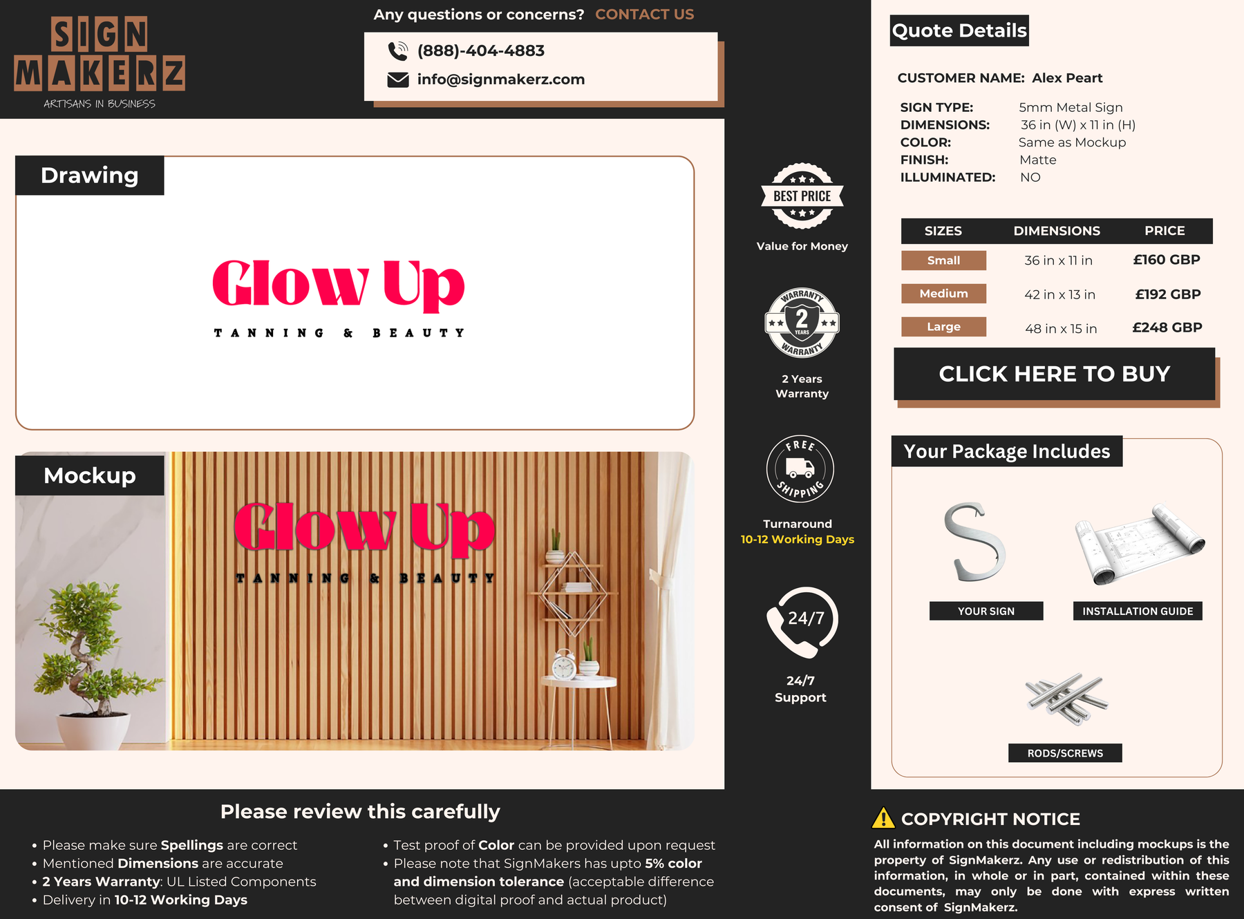 Enhance your business presence with our expertly crafted signage, made from top-quality material, to ensure longevity and durability. Fully customizable to reflect your unique brand identity, our signage offers a professional and polished appearance. Easy to install and low maintenance, it’s the perfect addition to any business setting. Trust us to deliver a product that not only meets but exceeds your expectations.