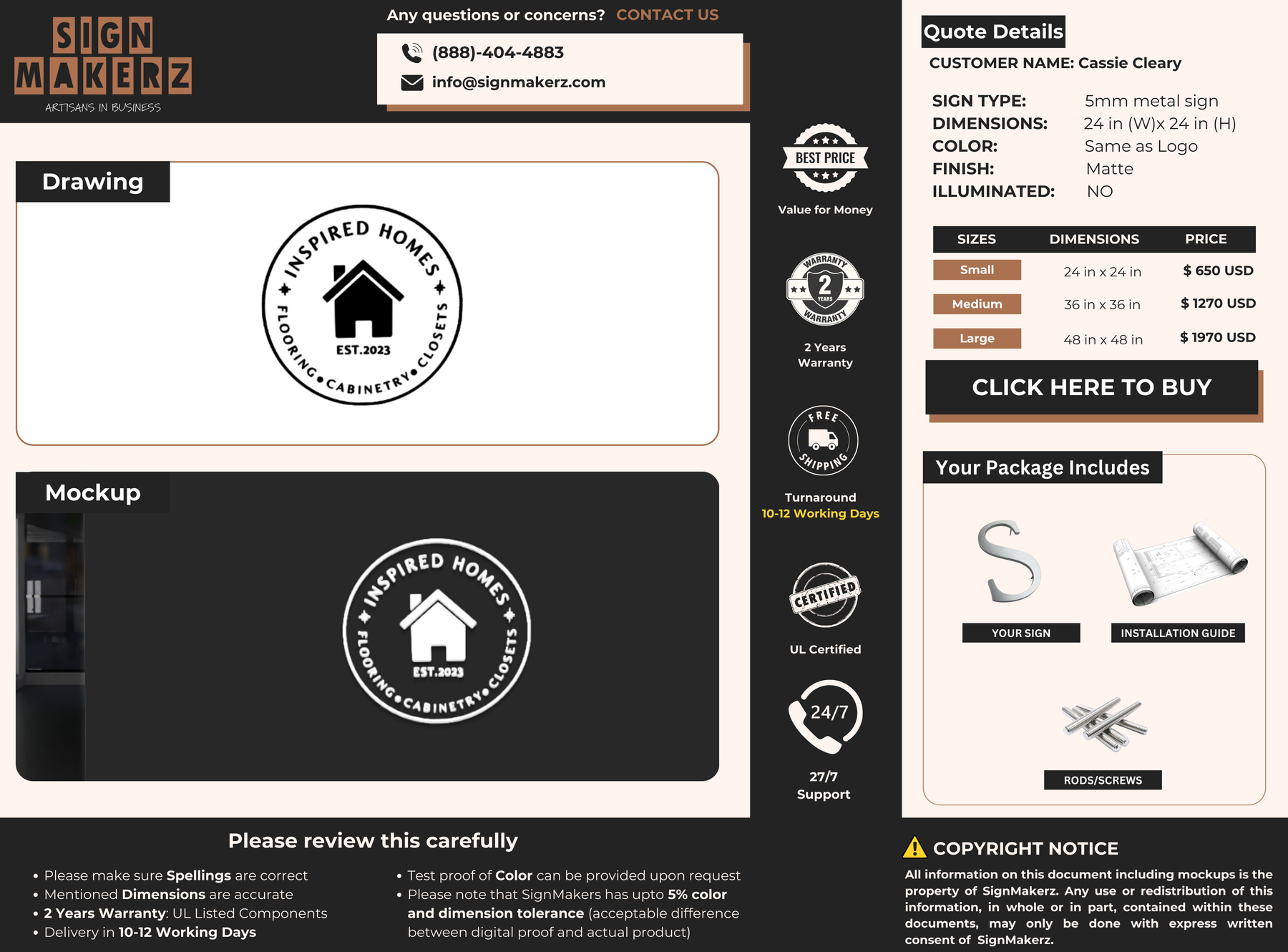 Crafted with premium material, this signage will elevate your business image, precisely mirroring your logo for a professional look.