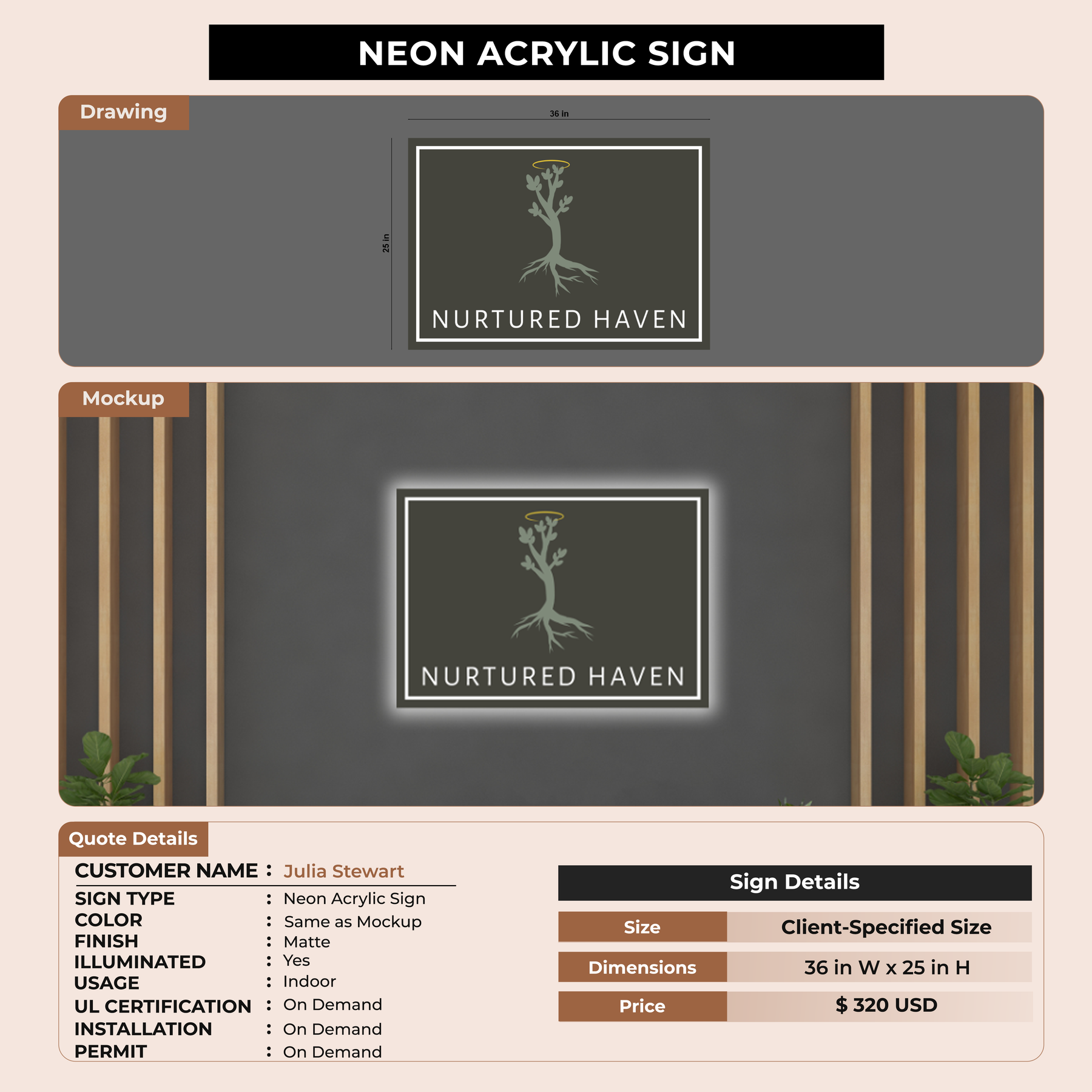 Neon Acrylic Sign for Julia Stewart