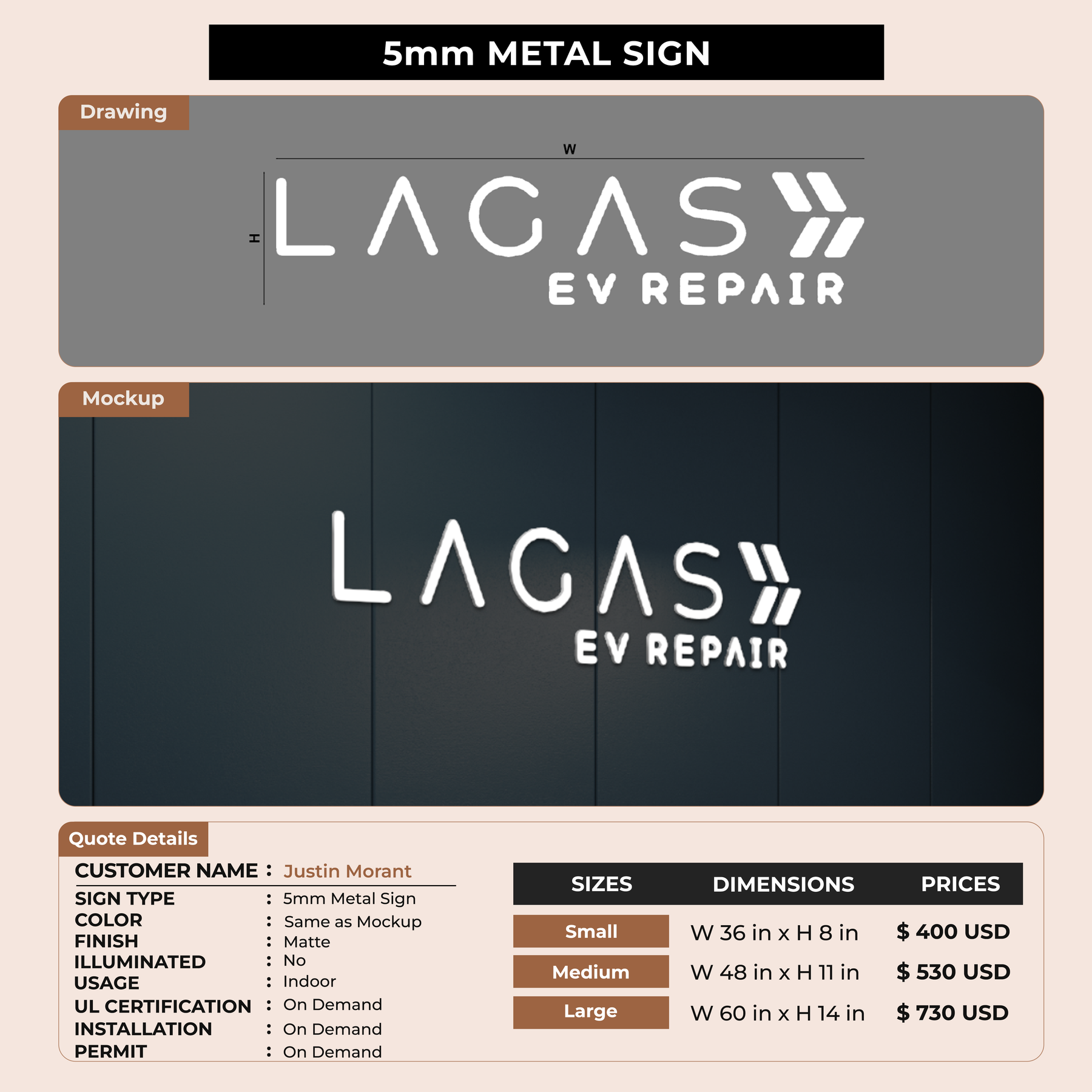 5mm metal sign for Justin Morant