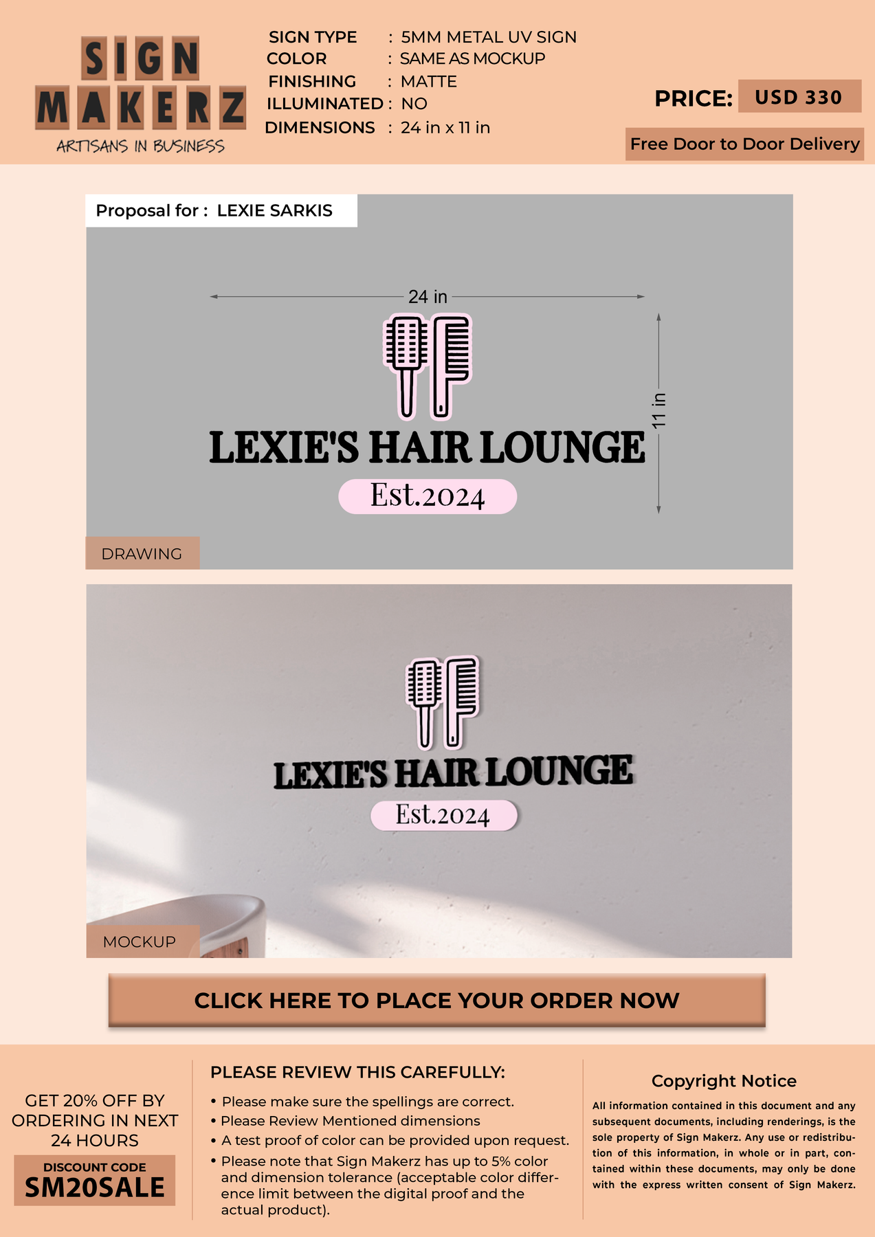 Crafted with premium material, this signage will elevate your business image, precisely mirroring your logo for a professional look.