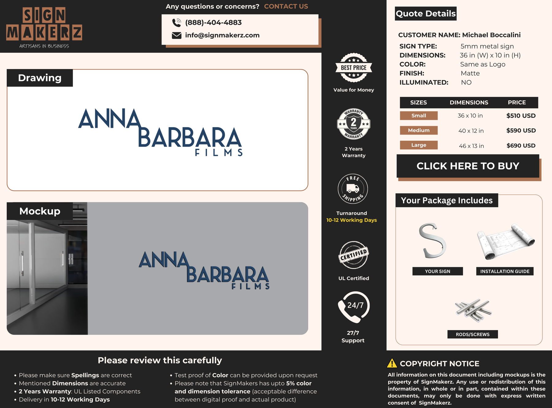 Crafted with premium material, this signage will elevate your business image, precisely mirroring your logo for a professional look.