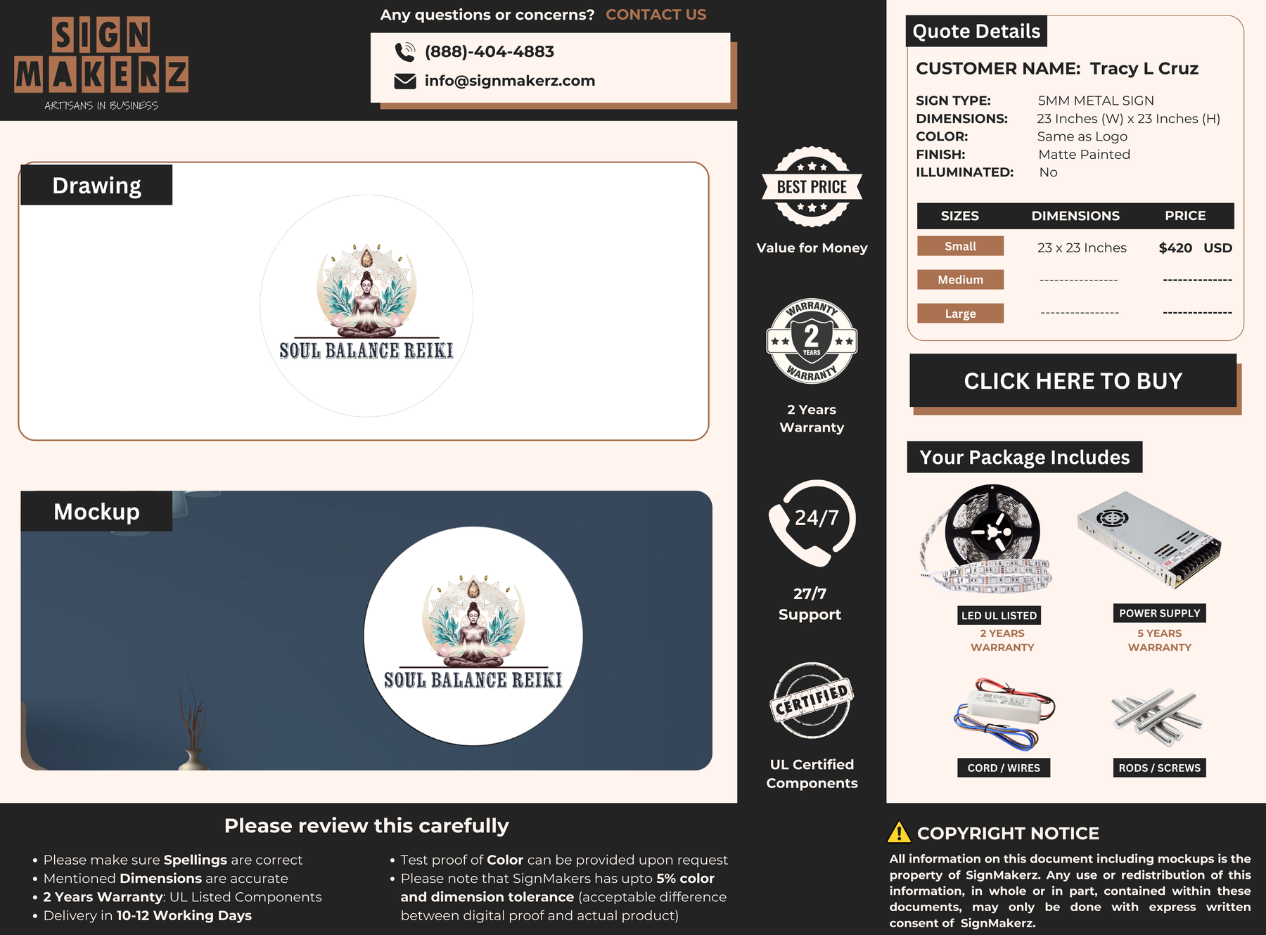 5mm Metal Sign for Tracy L Cruz
