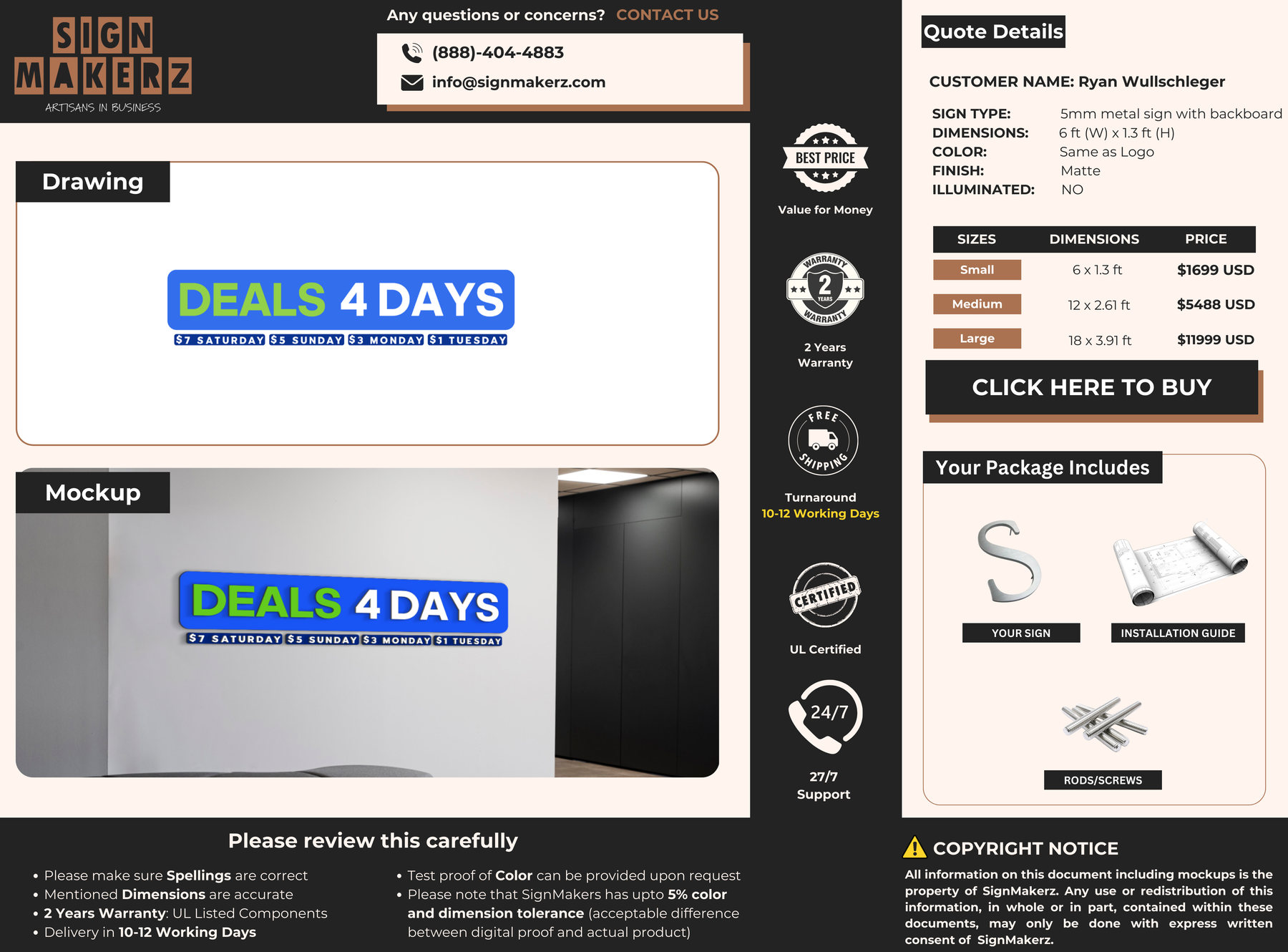 Crafted with premium material, this signage will elevate your business image, precisely mirroring your logo for a professional look.