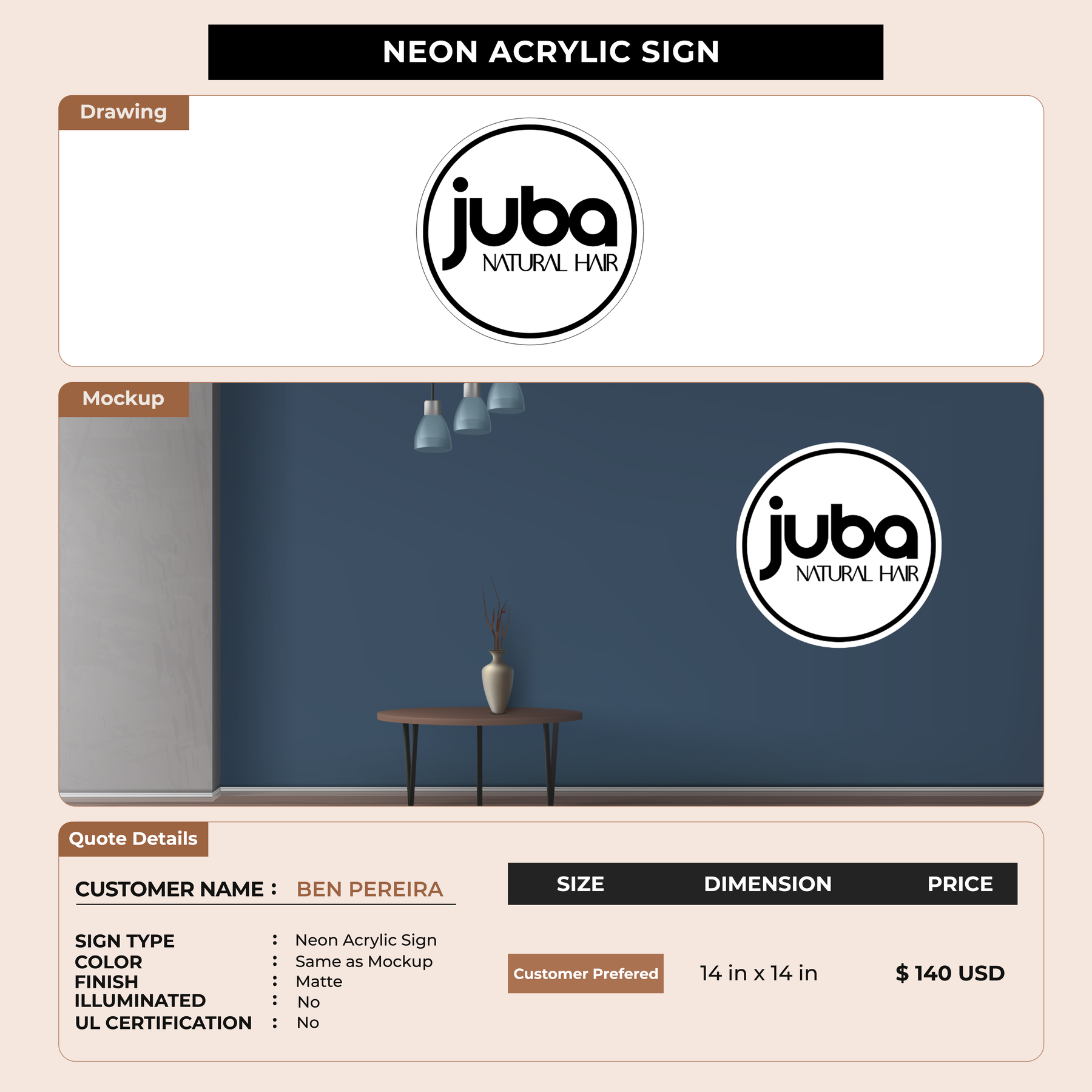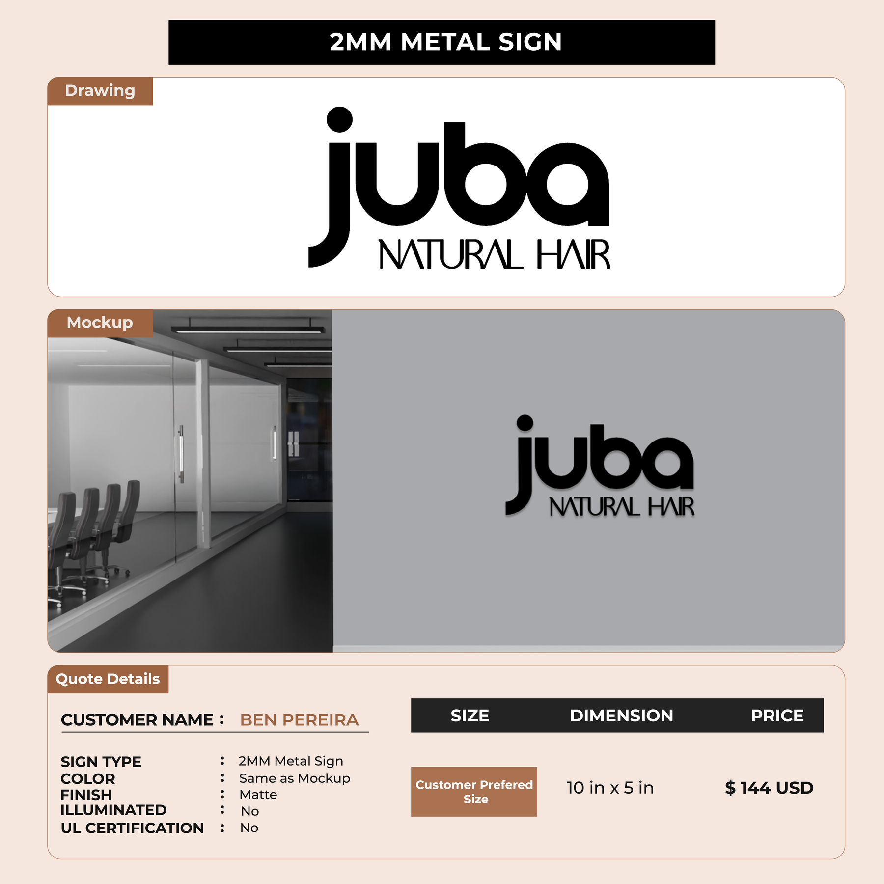 Business signage for BEN PEREIRA