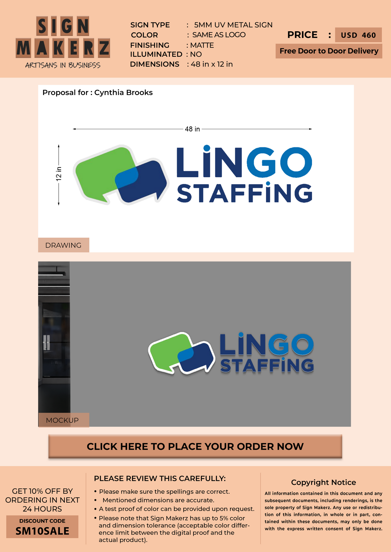 Crafted with premium material, this signage will elevate your business image, precisely mirroring your logo for a professional look.
