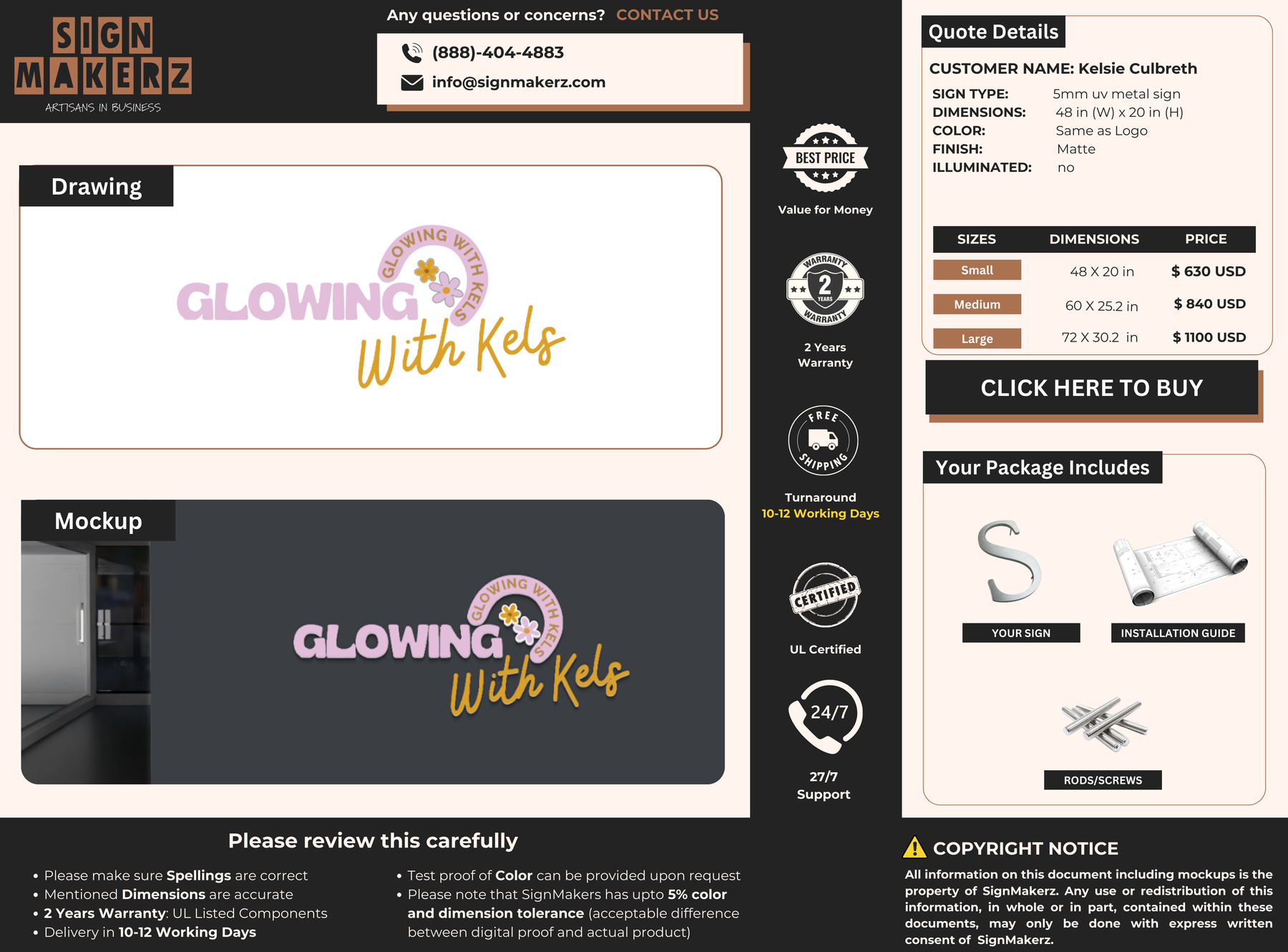 Crafted with premium material, this signage will elevate your business image, precisely mirroring your logo for a professional look.