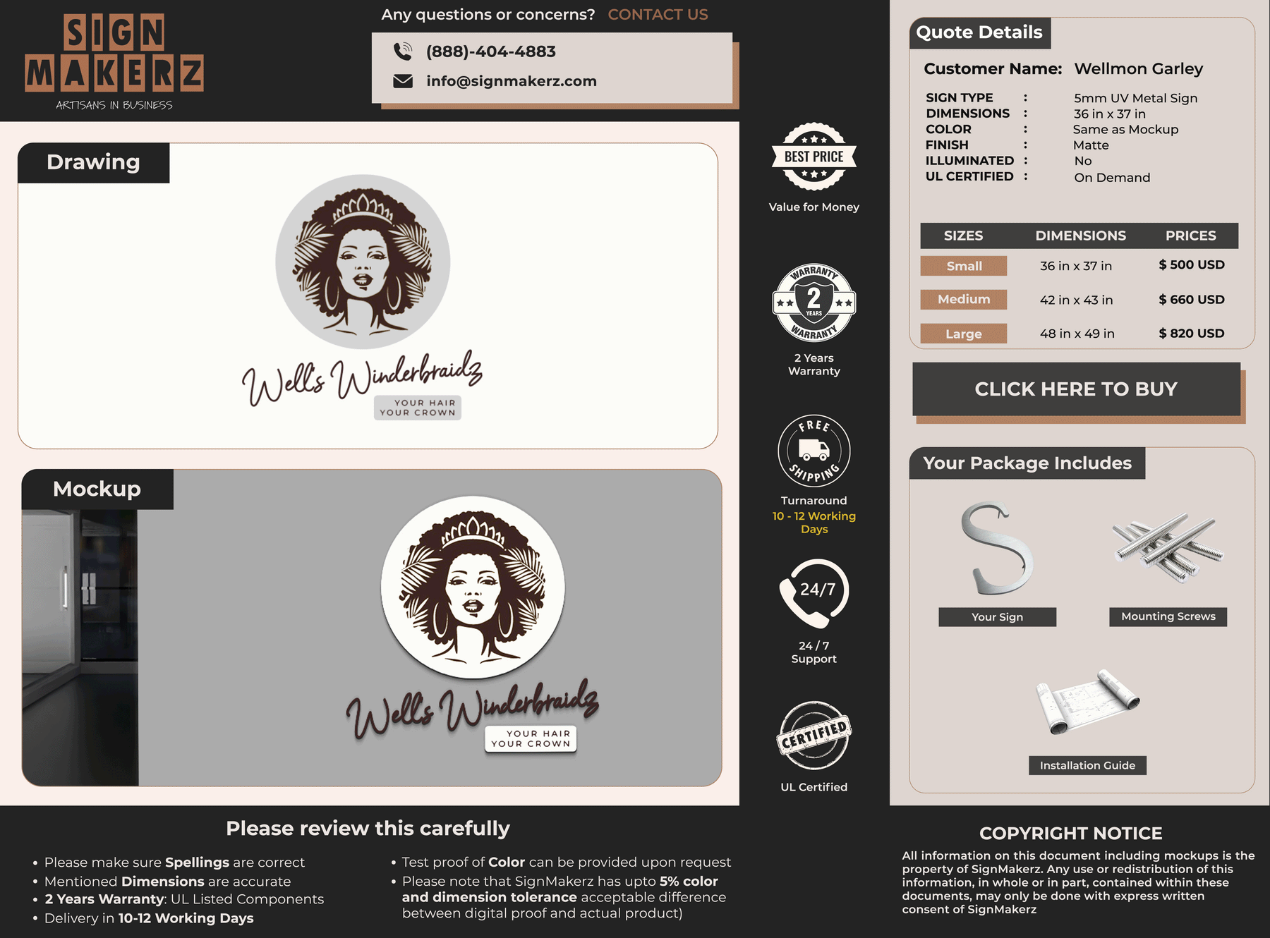 5MM UV Metal Sign for Wellmon Garley