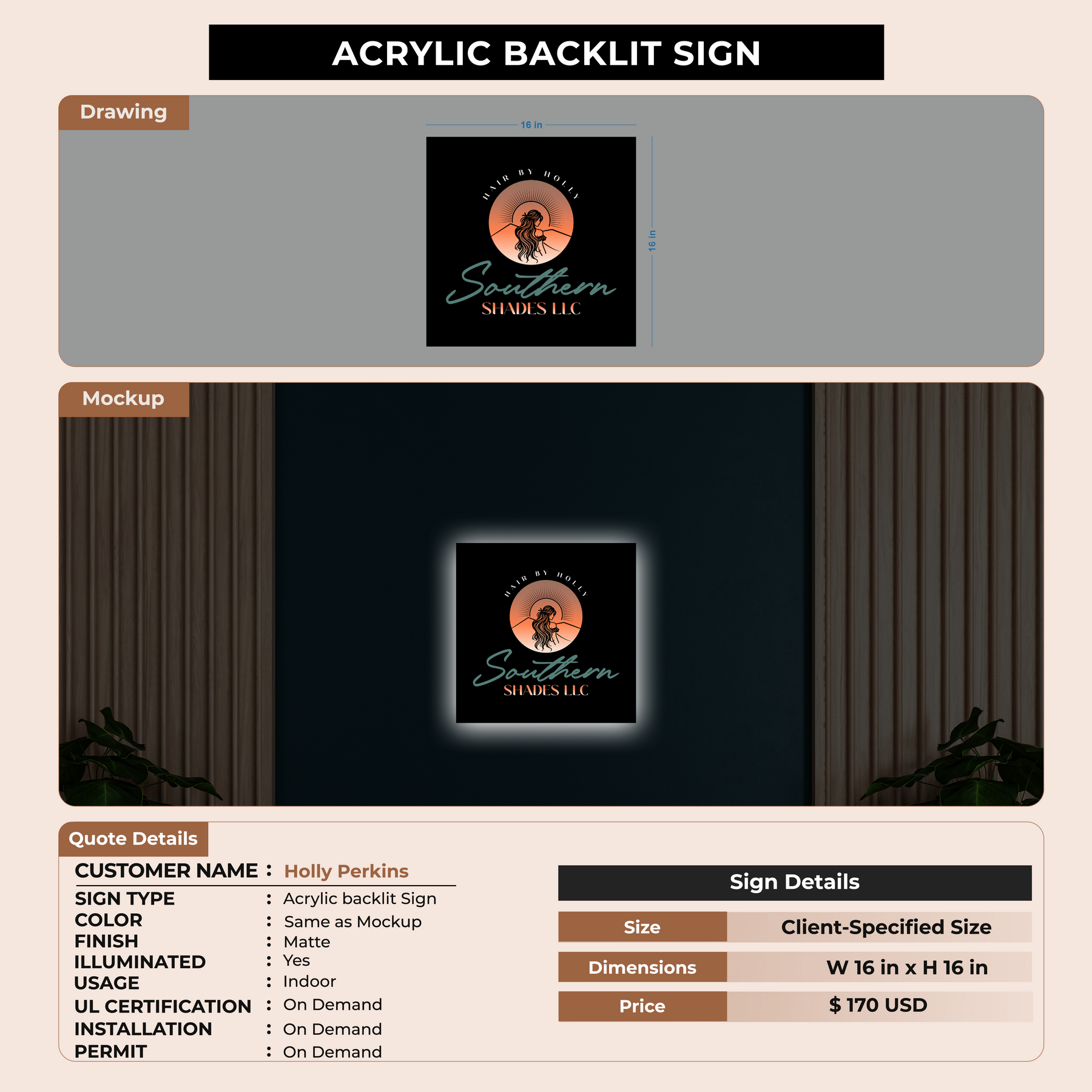 Acrylic Backlit Sign For Holly Perkins