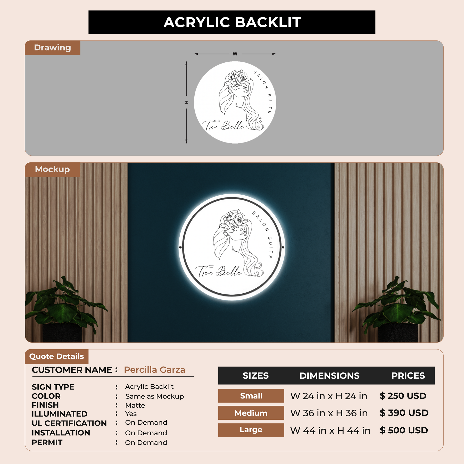 Acrylic Backlit sign for Percilla Garza