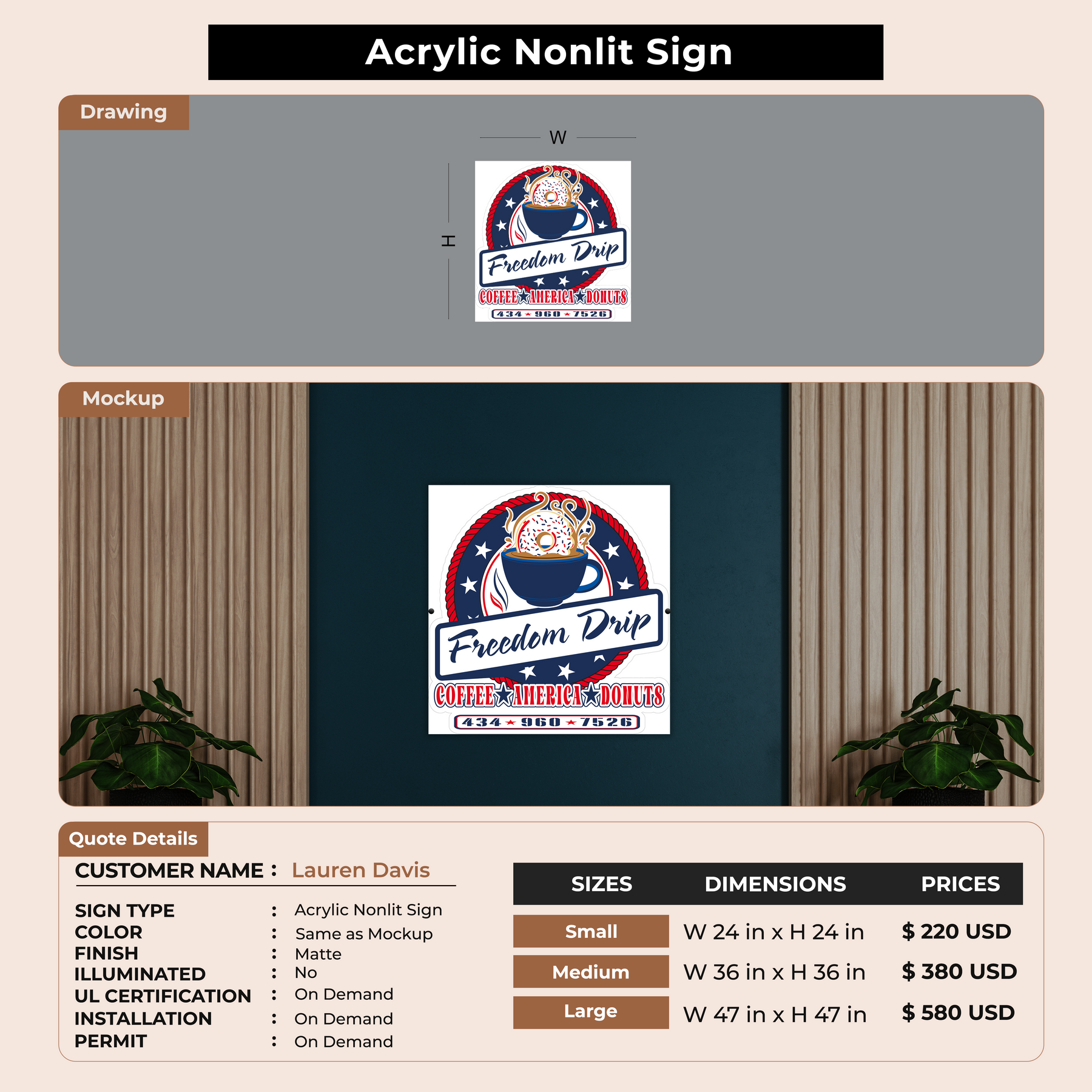 Enhance your business presence with our expertly crafted signage, made from top-quality material, to ensure longevity and durability. Fully customizable to reflect your unique brand identity, our signage offers a professional and polished appearance. Easy to install and low maintenance, it’s the perfect addition to any business setting. Trust us to deliver a product that not only meets but exceeds your expectations.