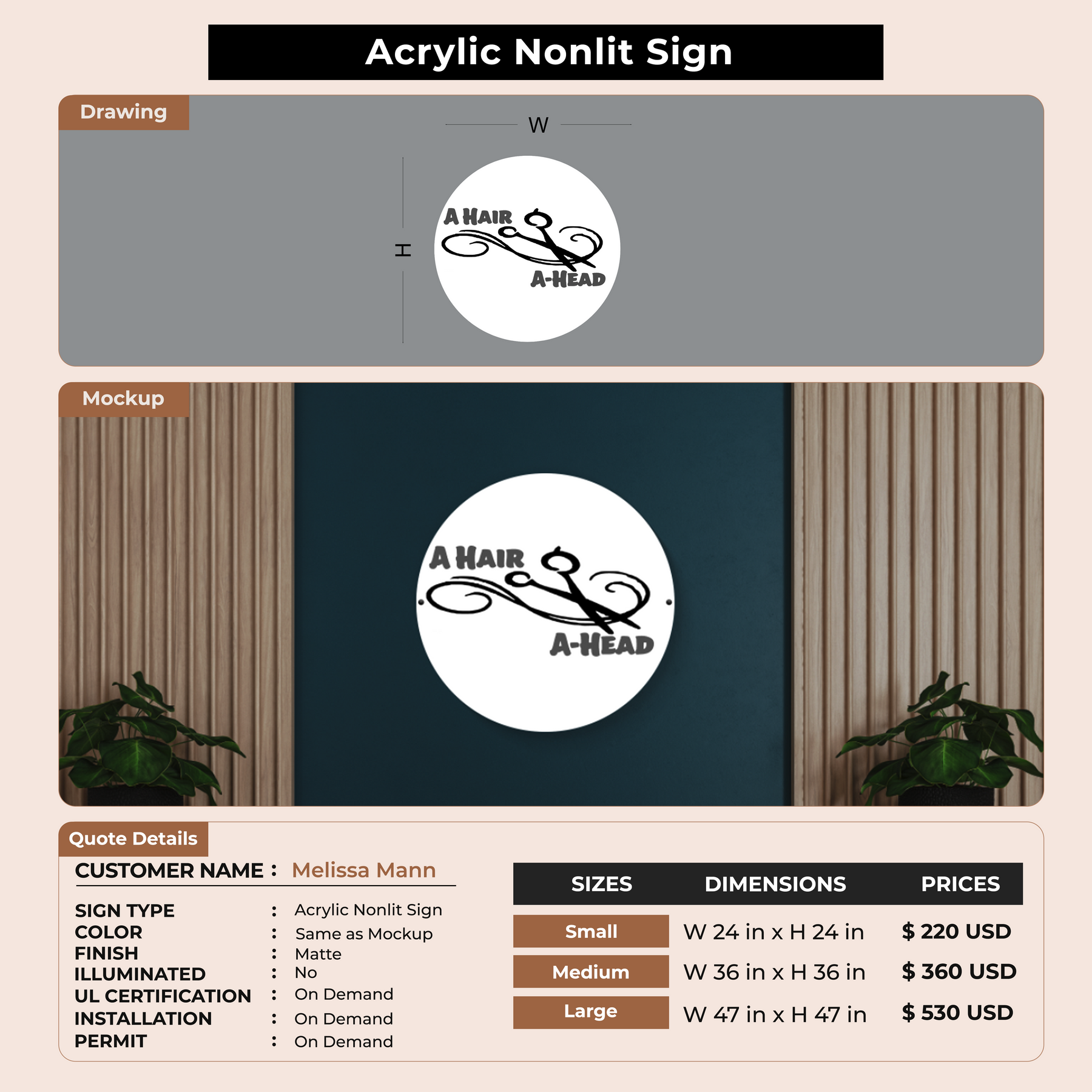 Acrylic Non-lit Sign for Melissa Mann